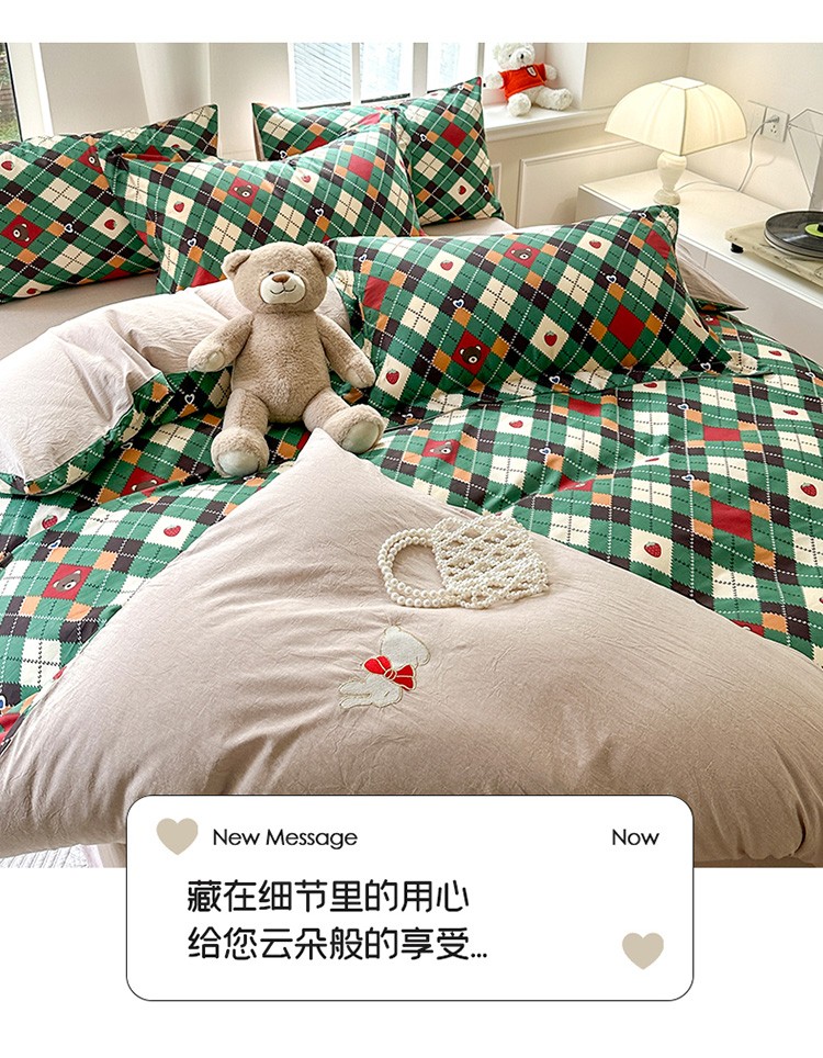 嘉汀兰 2023新款被套AB两用全棉水洗棉印花绣花四件套 圣诞熊