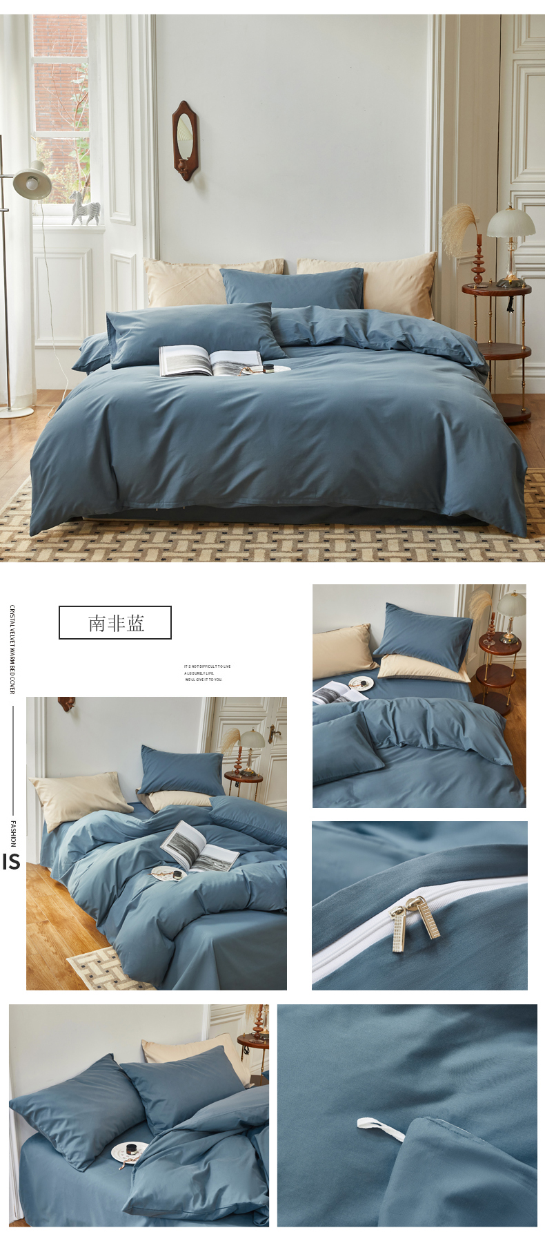 商品名称:怡家居 2023新款全棉100支磨毛四件套 南非蓝