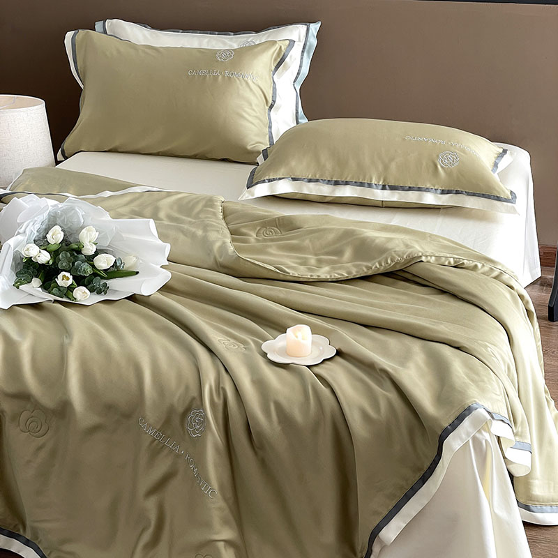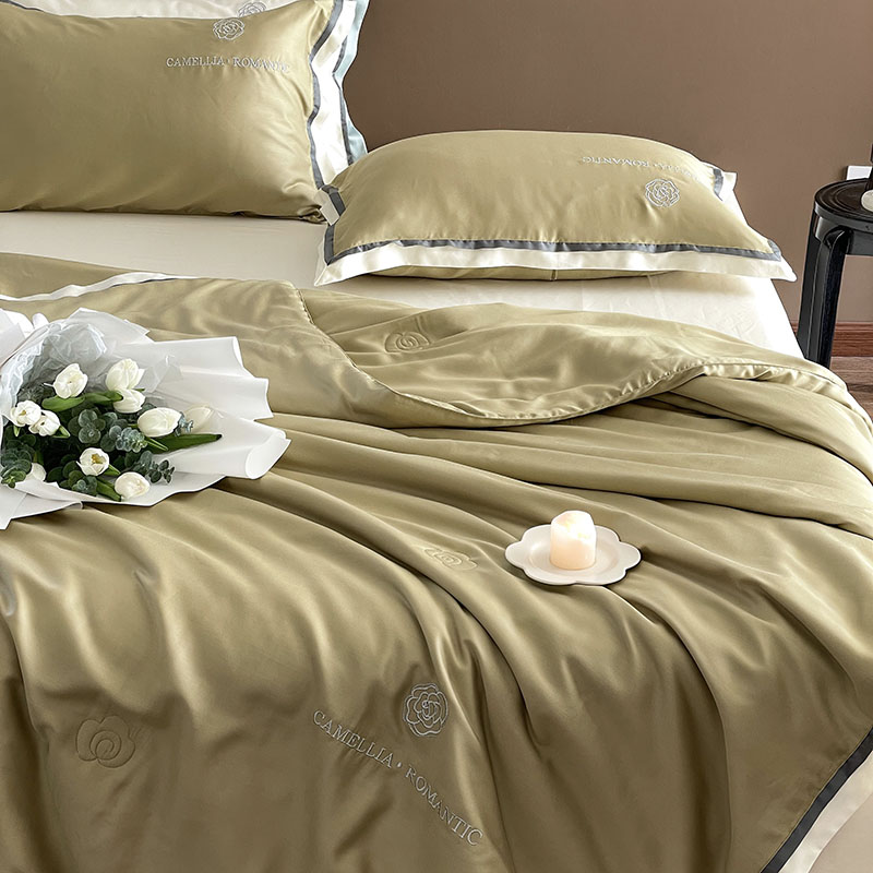 商品名称:汇庭 2023新款大豆蛋白纤维山茶花夏被 亚麻青