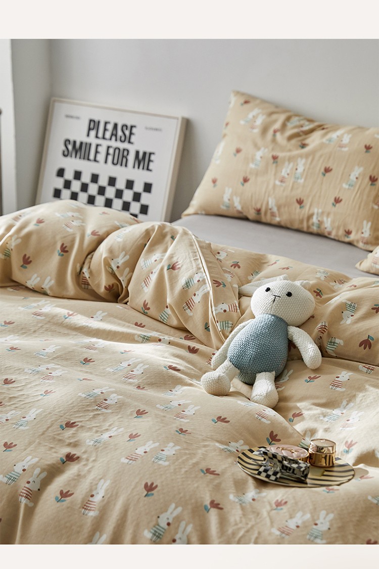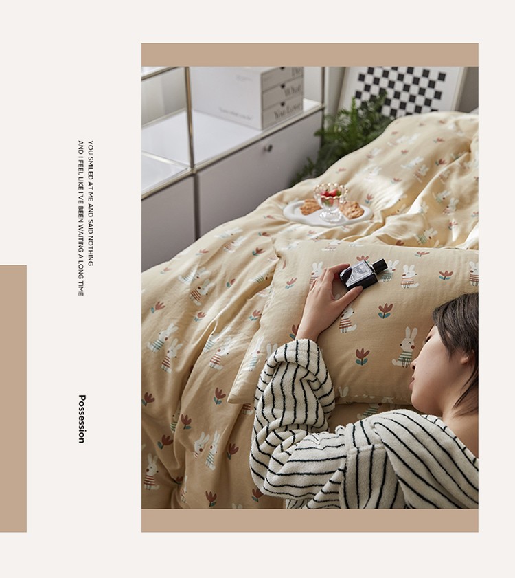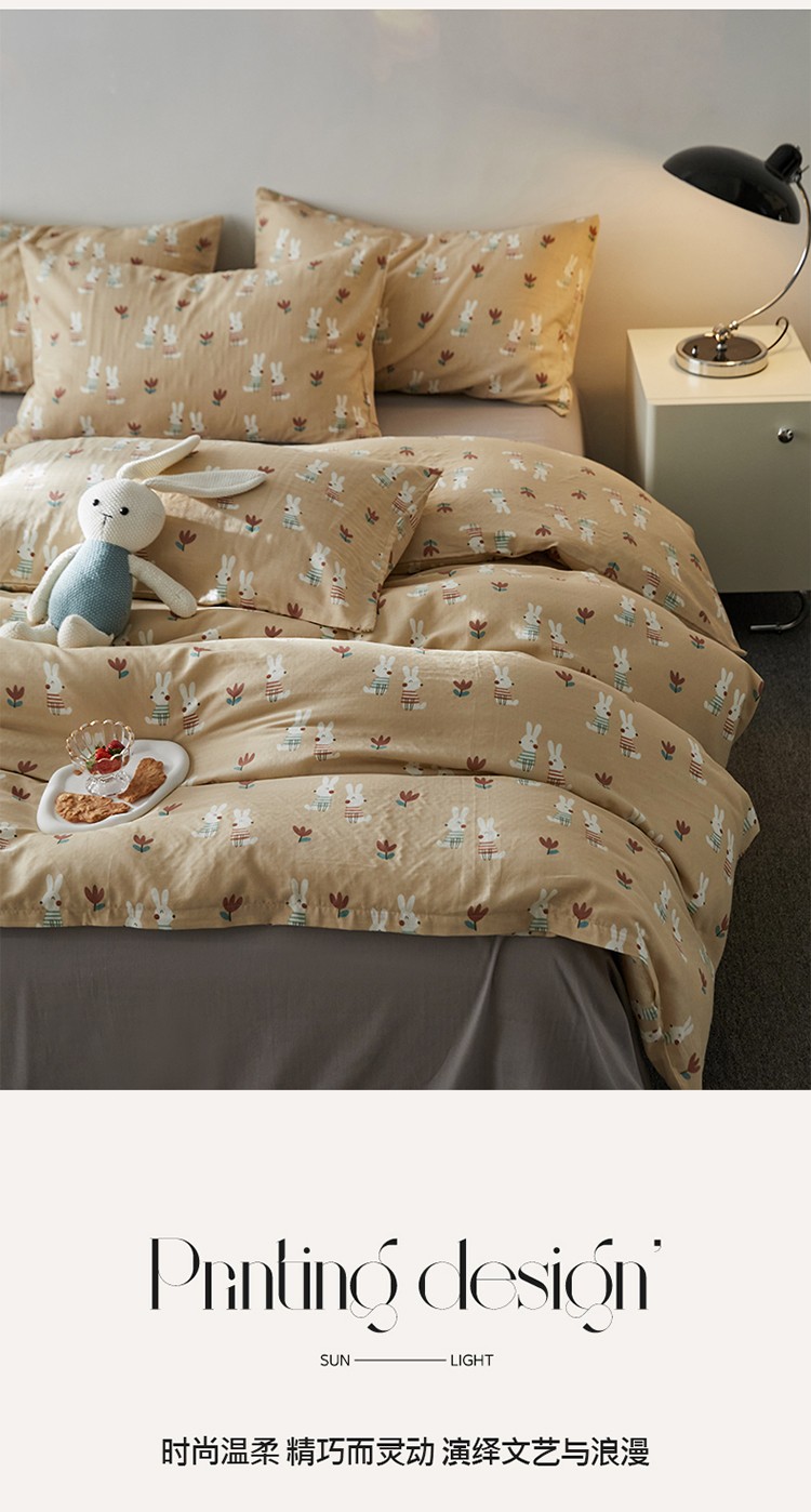 荣轩家居 2023新款A类全棉双层纱印花四件套 小兔啾咪