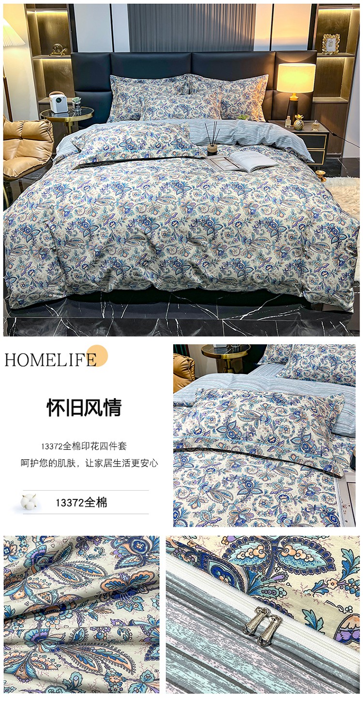(总)富之航 2023新款13372全棉四件套纯棉复古花园小清新