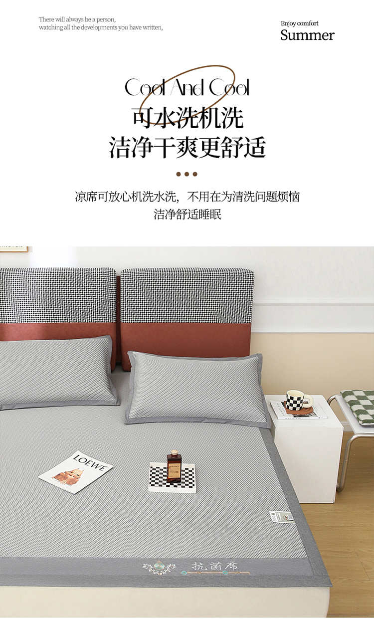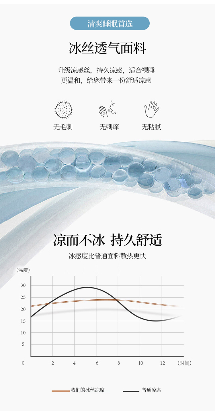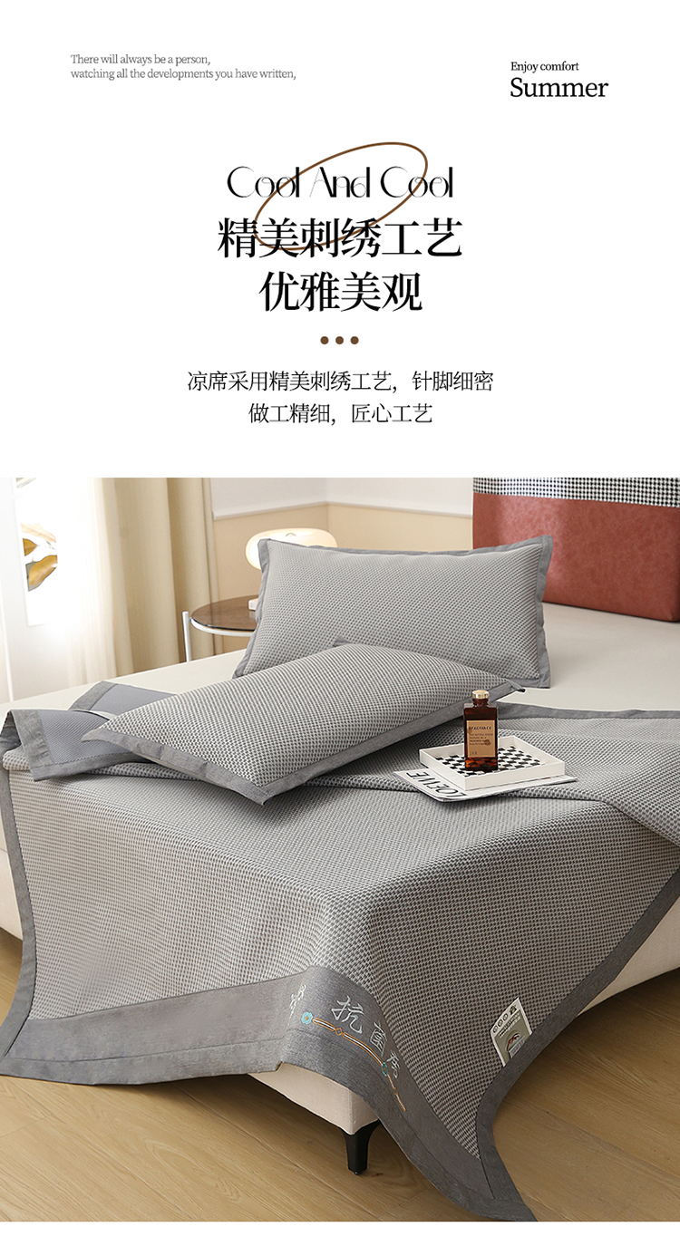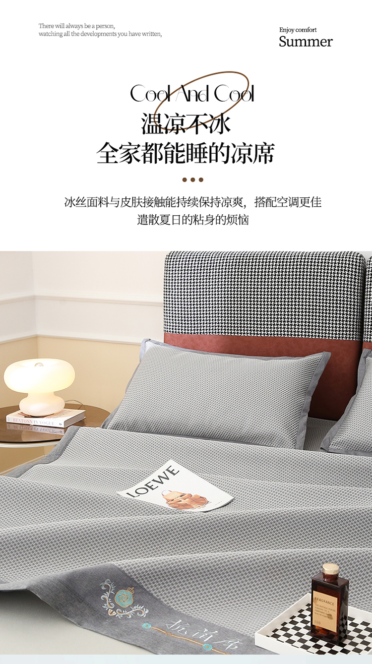 宜派家纺 2023新款800D原肌抗菌冰丝席 原肌-灰【直角款】