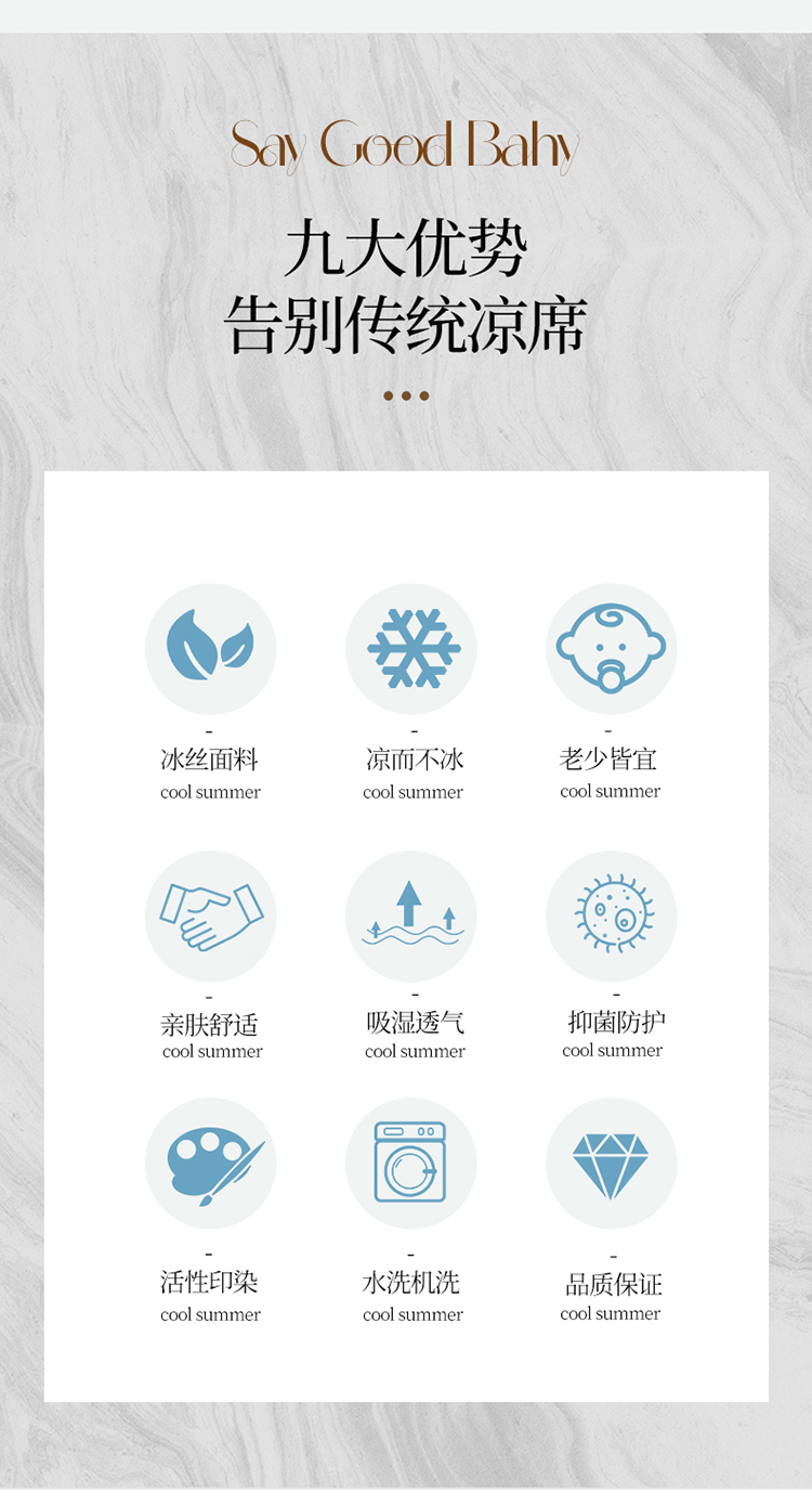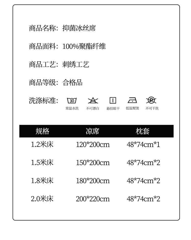 商品名称:宜派家纺 2023新款800D原肌抗菌冰丝席 原肌-灰【直角款】