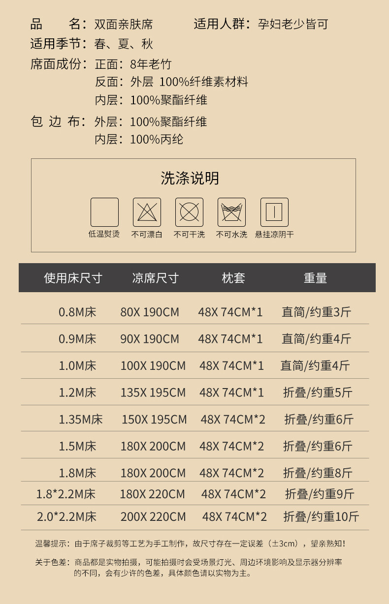 当前位置: 91家纺网 > 商品网购 > 床上用品 > 凉席 > 竹席 > 夜笙 2023新款可折叠双面竹席冰丝席藤席 时光对节