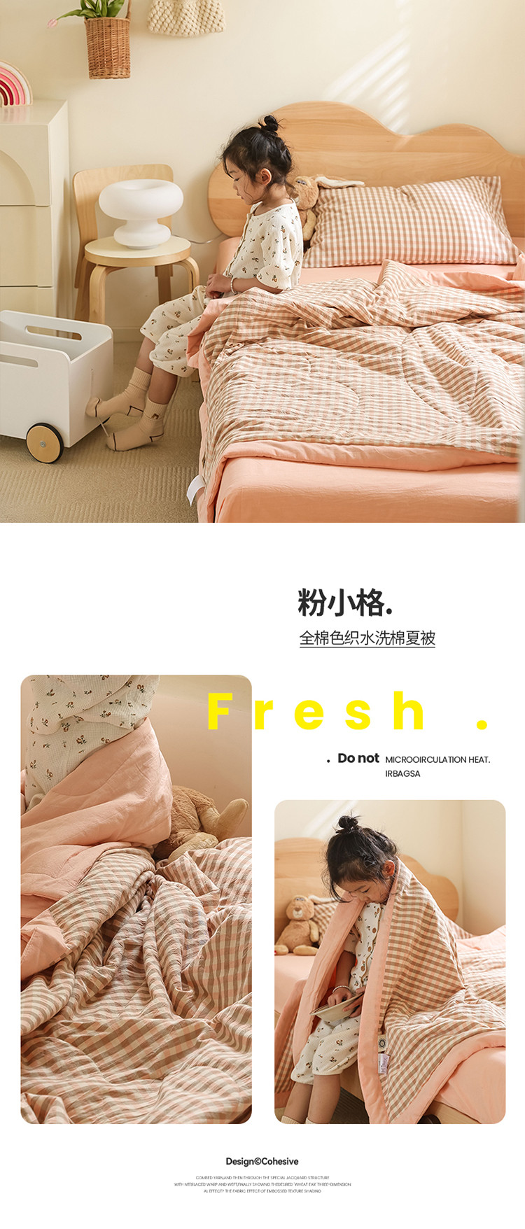 商品名称:寐眠 2023新款全棉色织水洗棉儿童夏被 粉小格