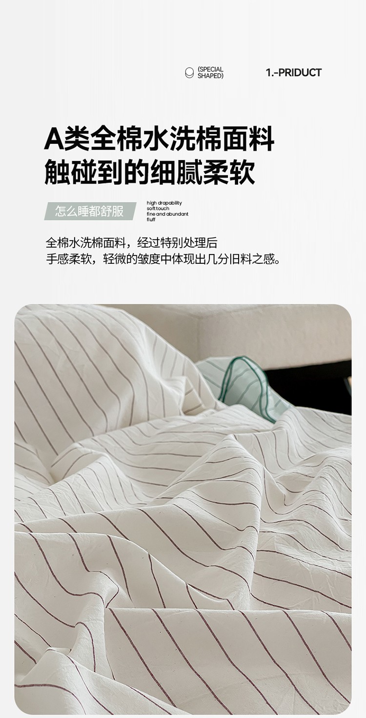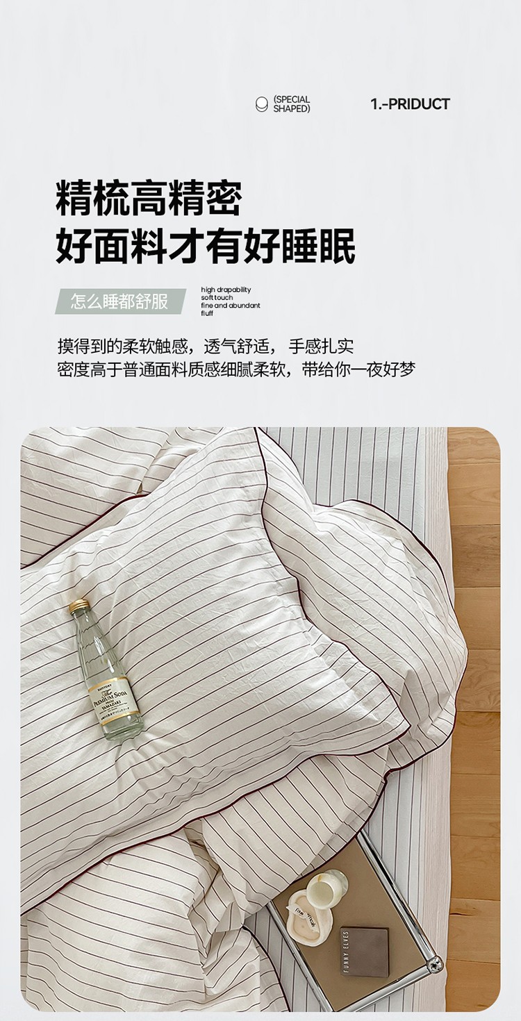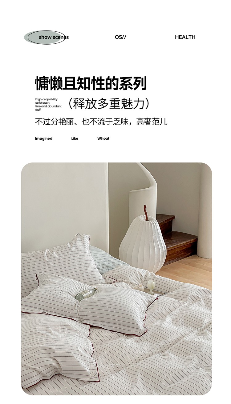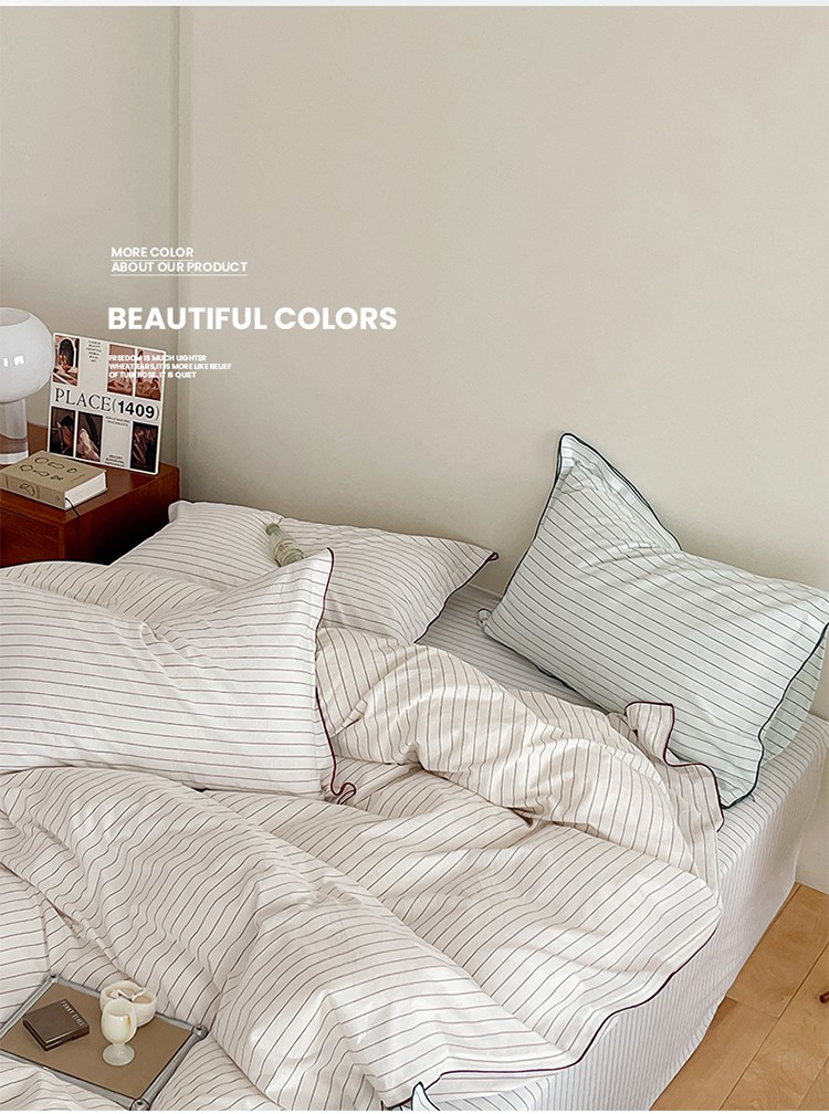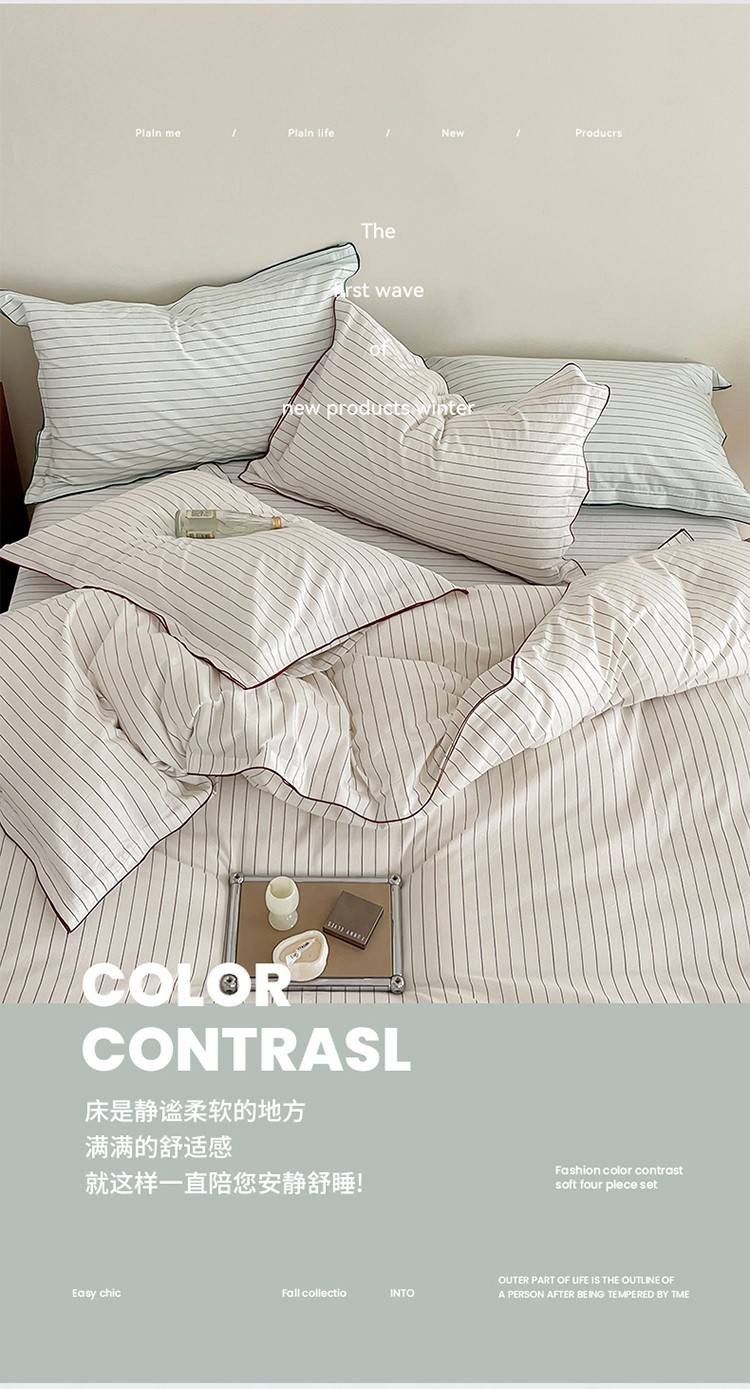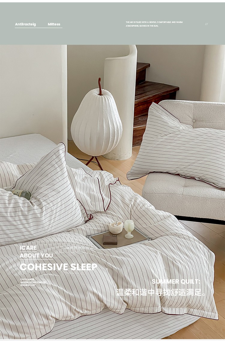 商品名称:华超针织 2023新款密拷边水洗棉四件套 红色条纹