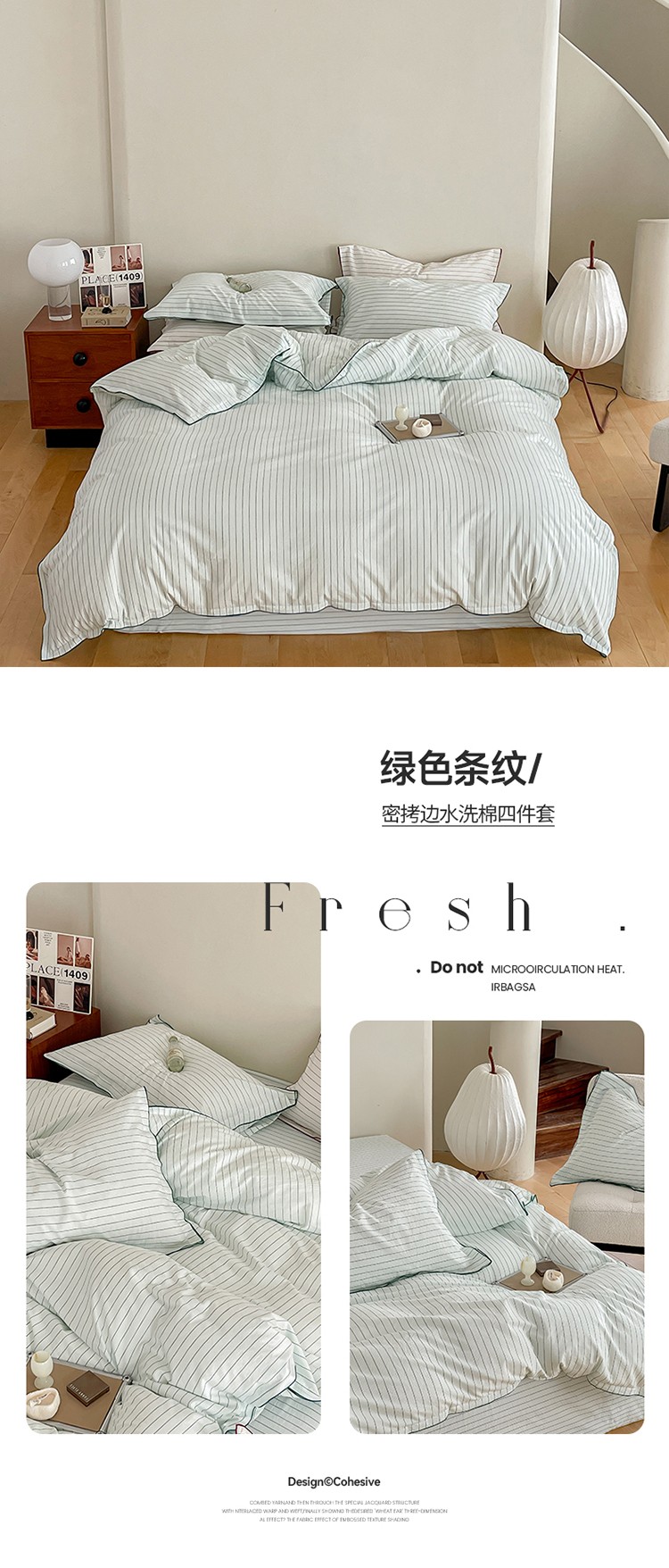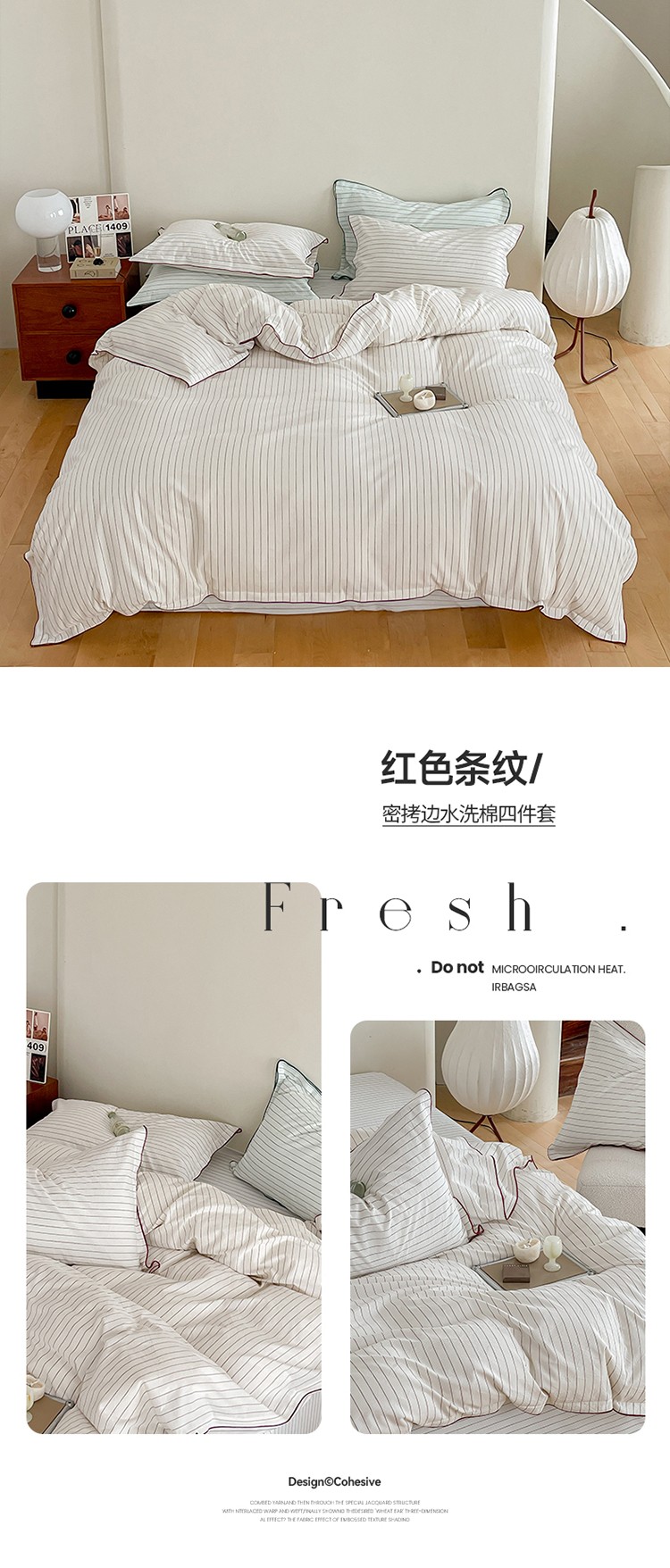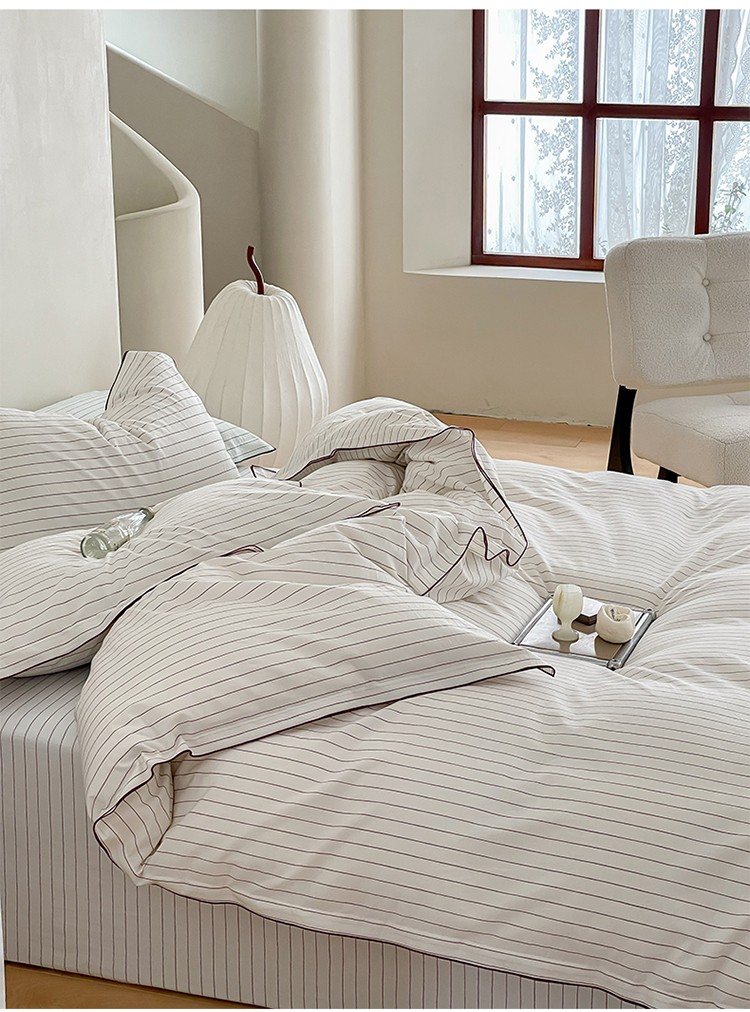 华超针织 2023新款密拷边水洗棉四件套 红色条纹