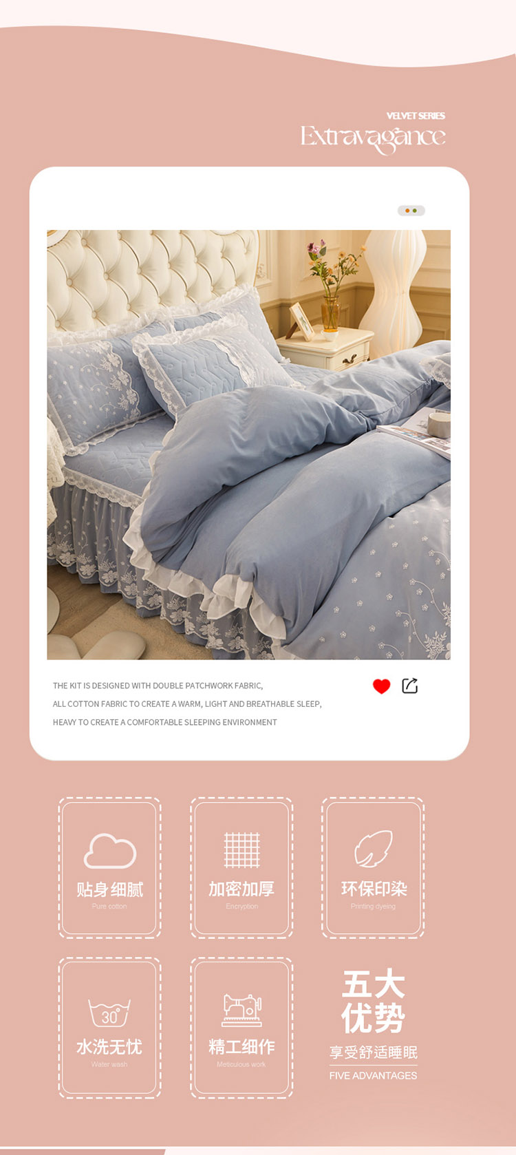 1.8m加大床裙款四件套(被套200*230cm床裙180*220cm枕套48*74cm*2) | ¥200.00 |