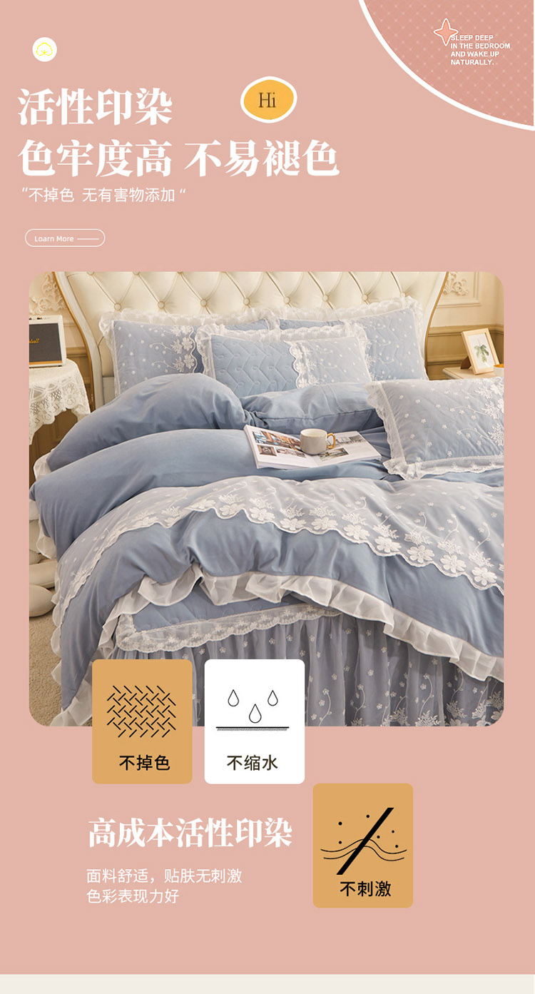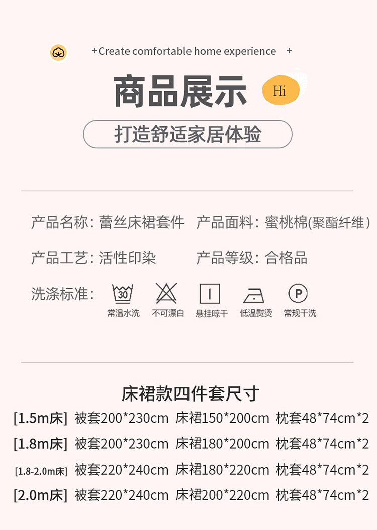 1.8m床裙款四件套(被套200*230cm床裙180*200cm枕套48*74cm*2) | ¥195.00 |