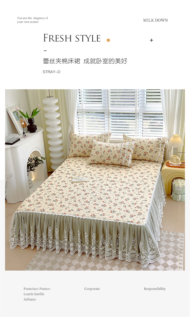 罗艺轩 2024新款法式风蕾丝夹棉床裙三件套 花想容-春风南岸