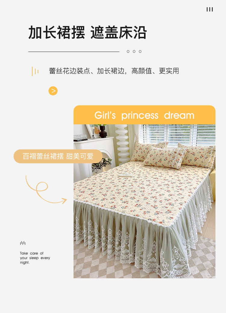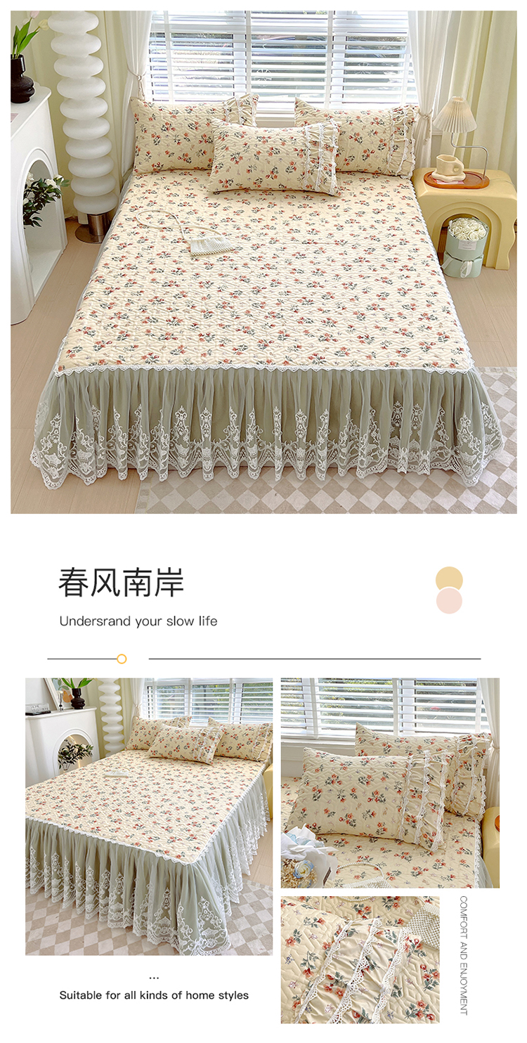 商品名称:罗艺轩 2024新款法式风蕾丝夹棉床裙三件套 花想容-春风南岸