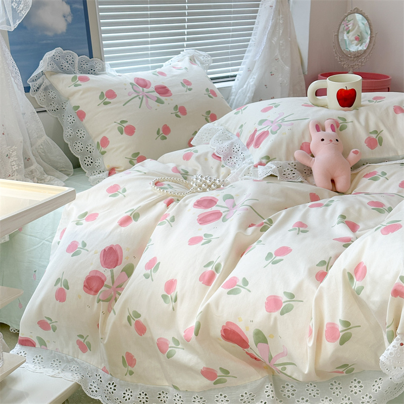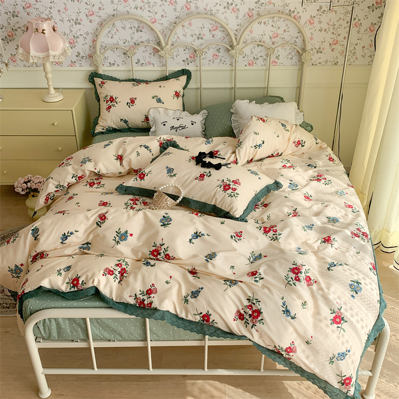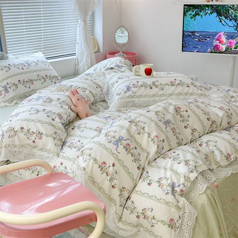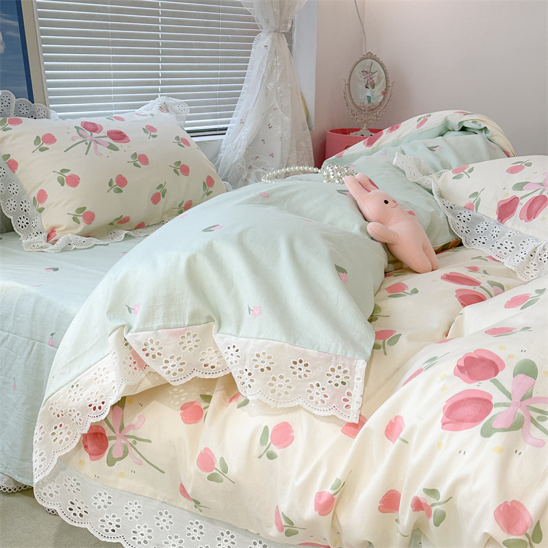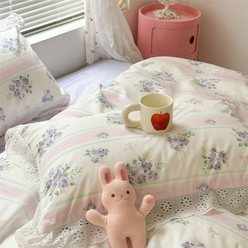 (总)昔可家纺 2023新款全棉四件套公主蕾丝花边ok