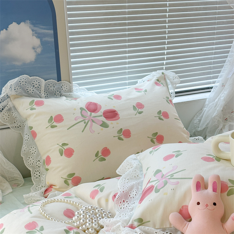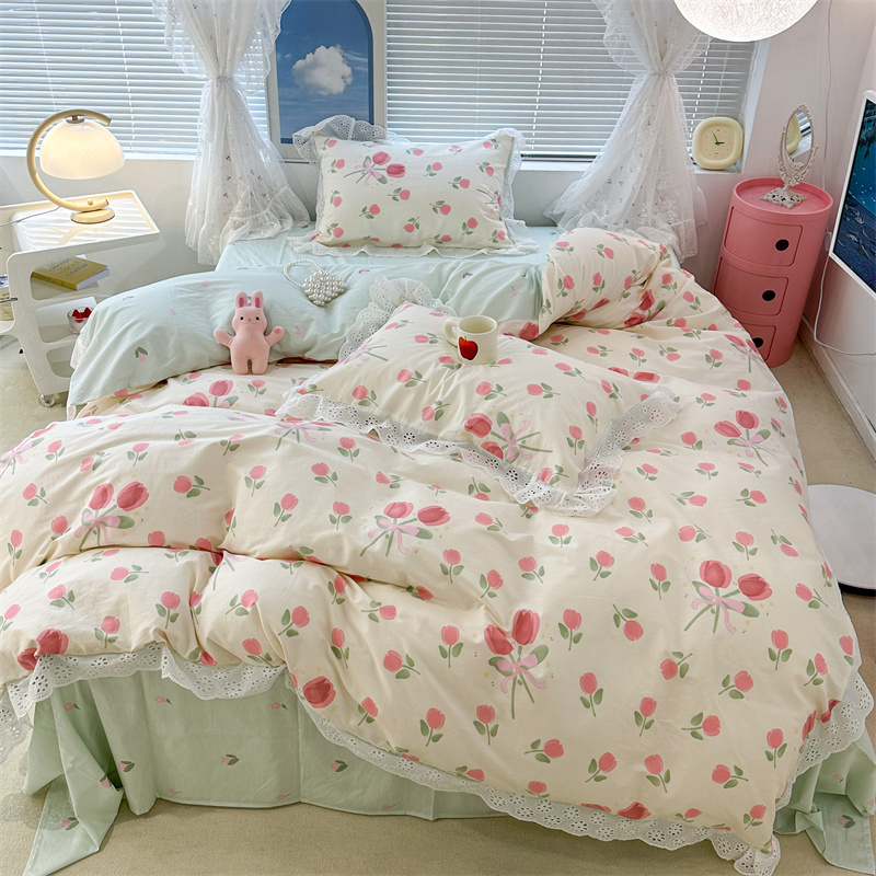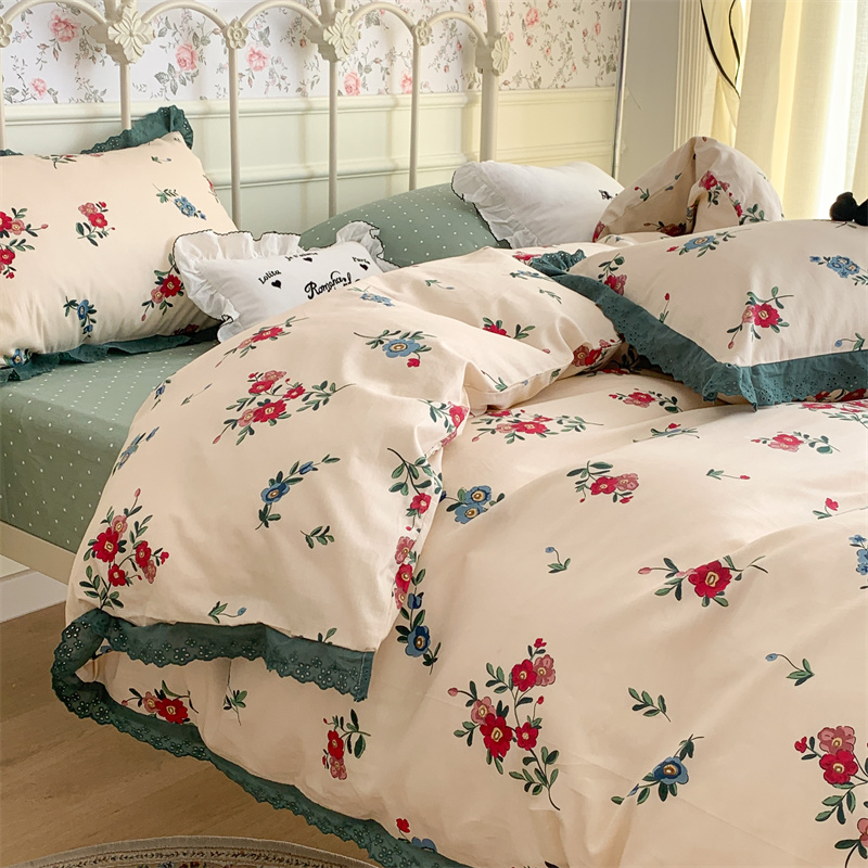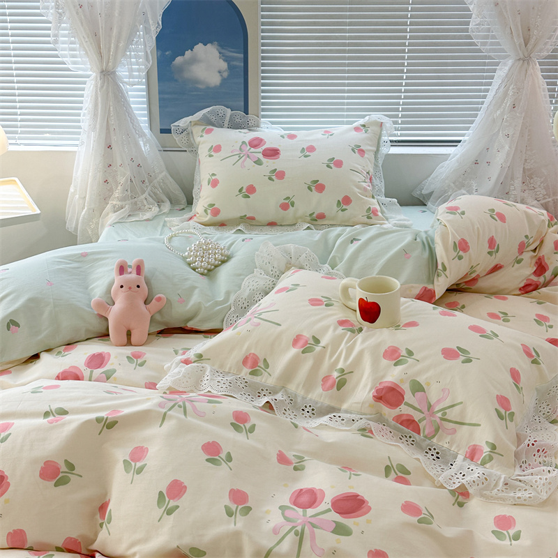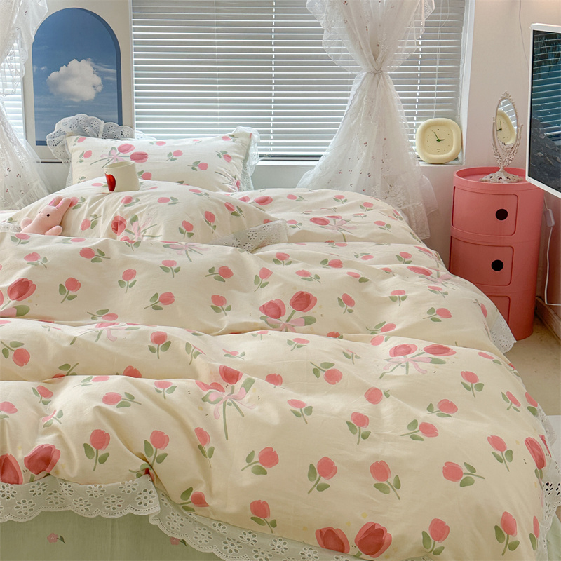 (总)昔可家纺 2023新款全棉四件套公主蕾丝花边ok