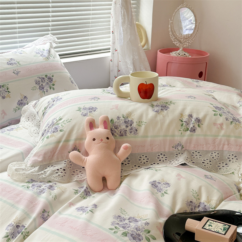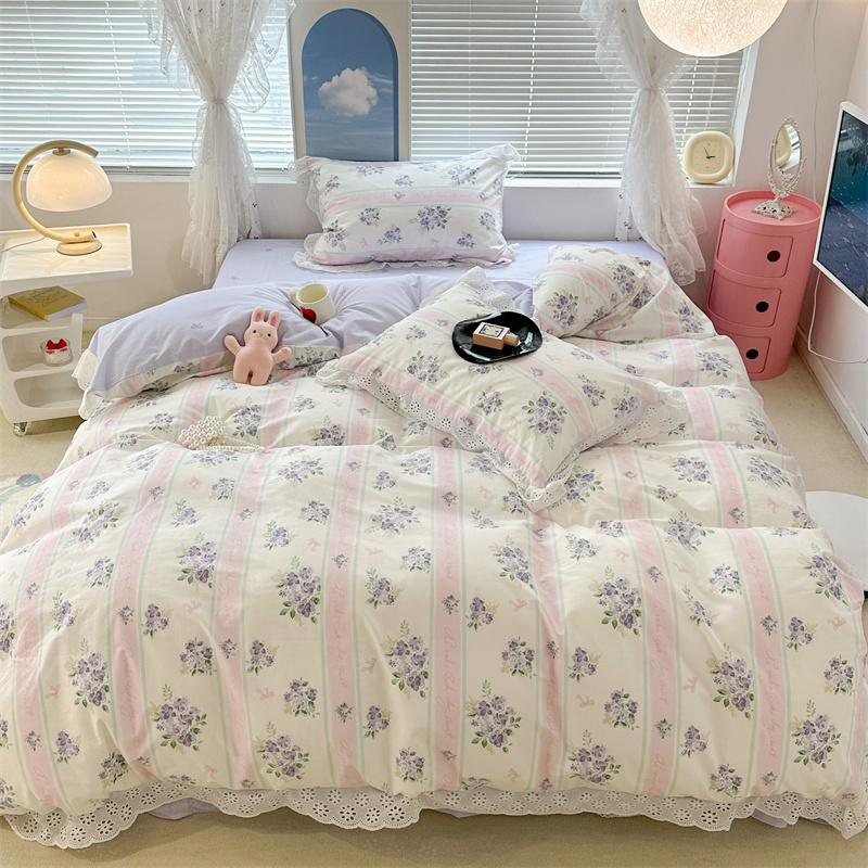 (总)昔可家纺 2023新款全棉小花系列四件套,柏林少女,小小的樱桃,紫色葡萄