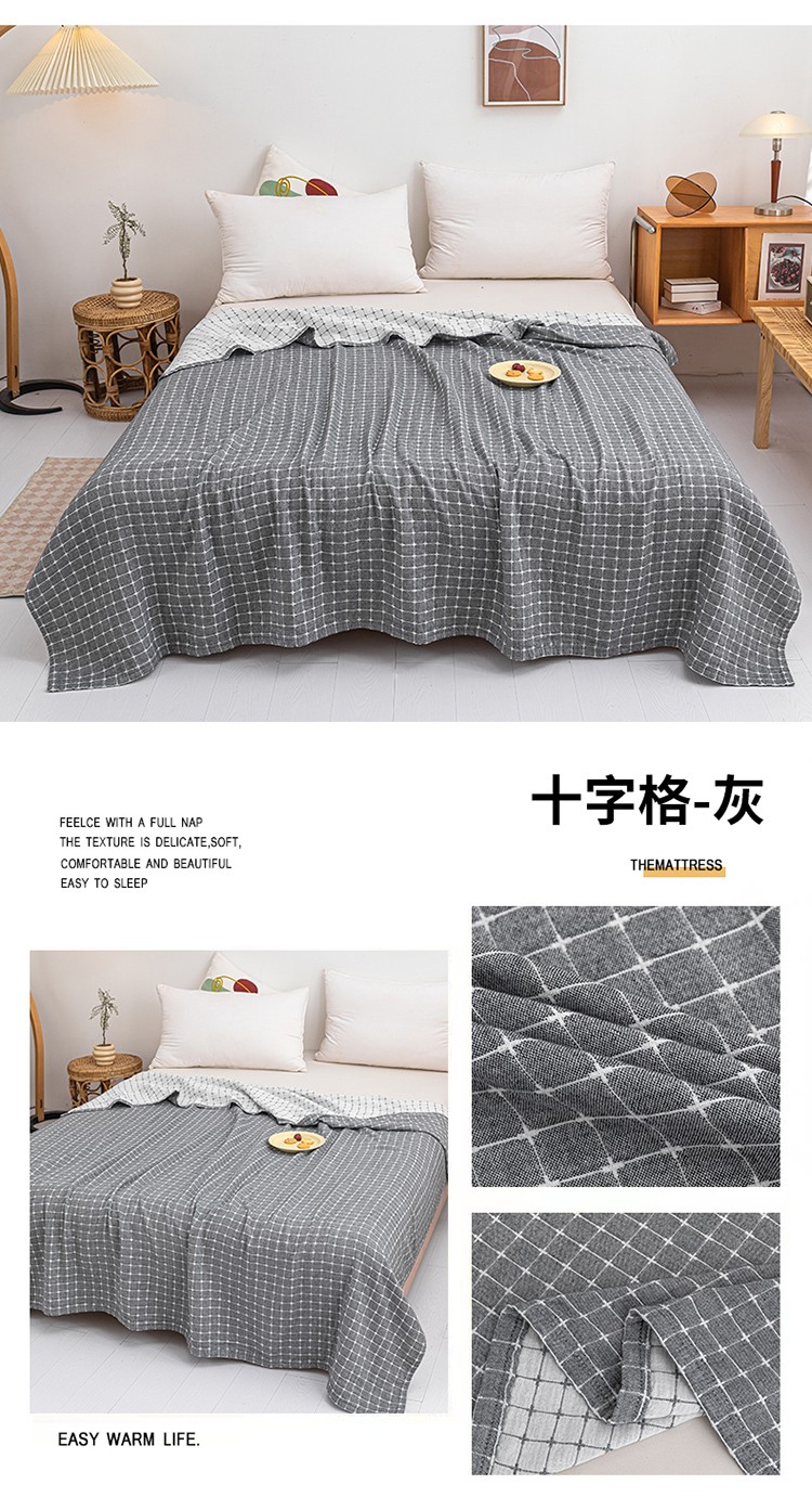 商品名称:卡奥 2024款日式水洗纯棉三层纱夏被毛巾被盖毯毛毯 十字格-灰