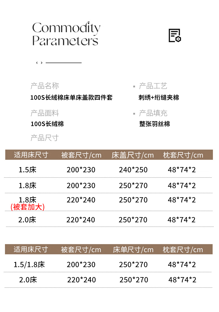 1.8m床加大被套床盖款四件套 | ¥380.00 |