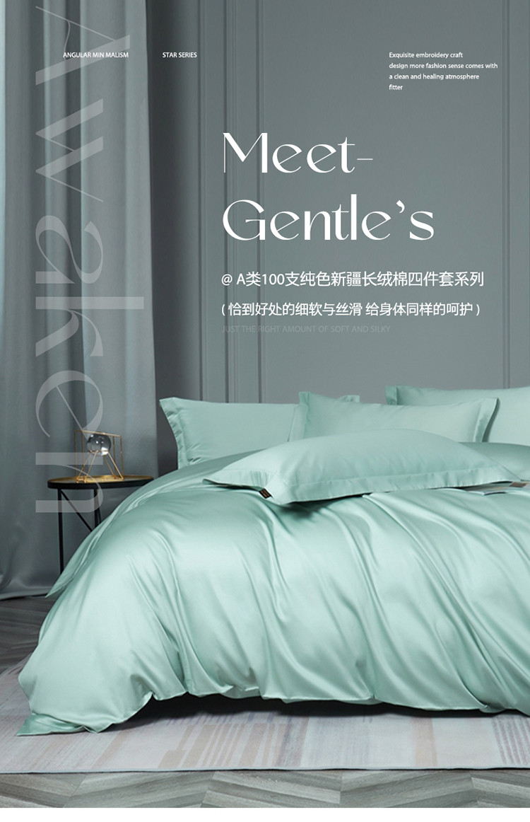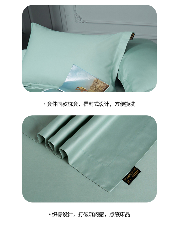 当前位置: 91家纺网 > 商品网购 > 床品套件 > 四件套 > 长绒棉四件套 > 莱阁亿 2023新款高支高密纯色新疆长绒棉四件套 丹青绿