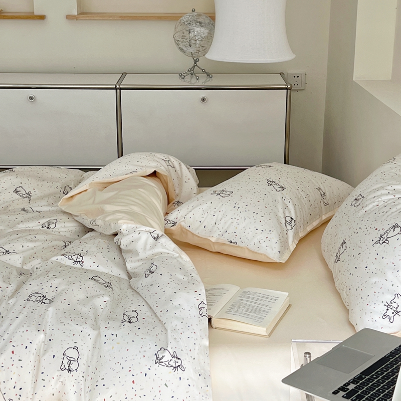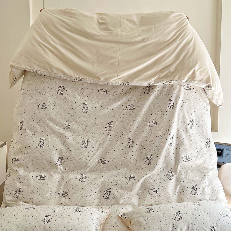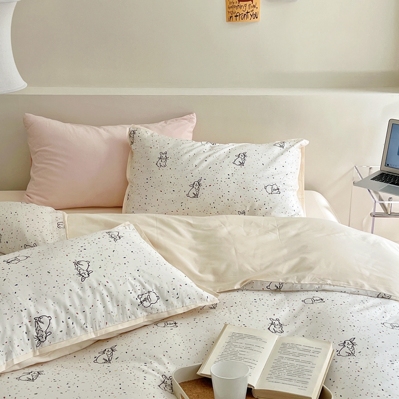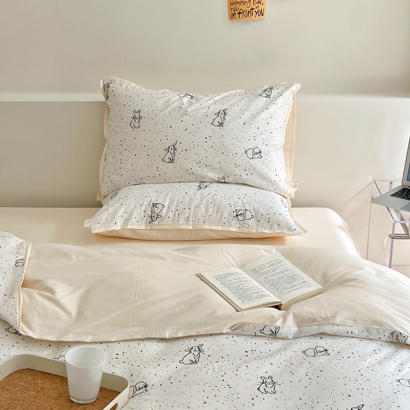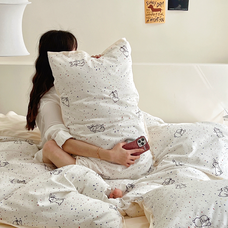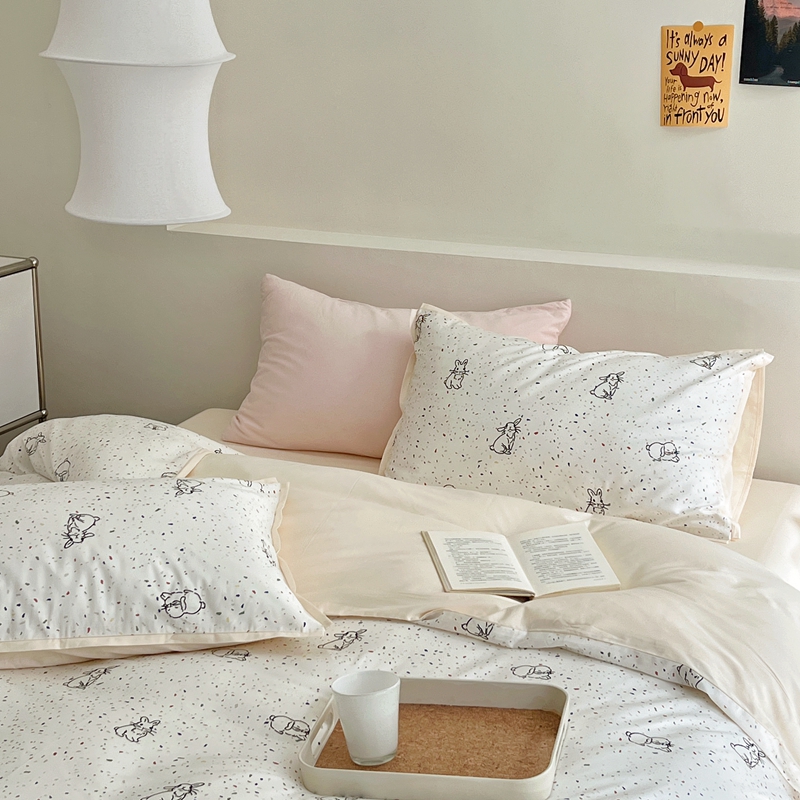 当前位置: 91家纺网 > 商品网购 > 床品套件 > 四件套 > 全棉普通四件套 > 蕊姿 50sA类数码印花四件套 彩点小兔 米色
