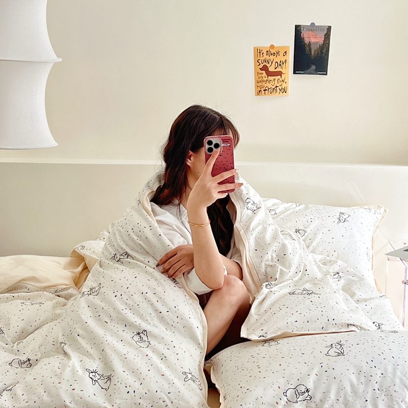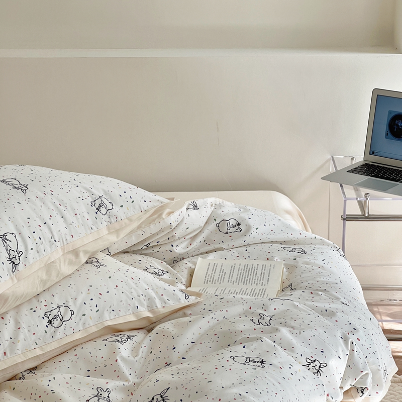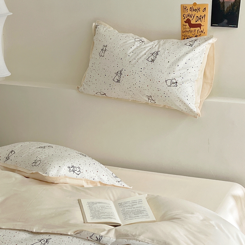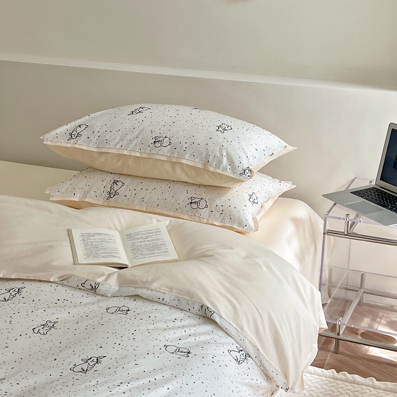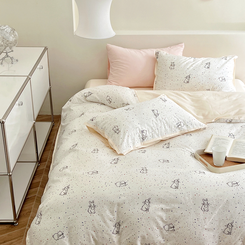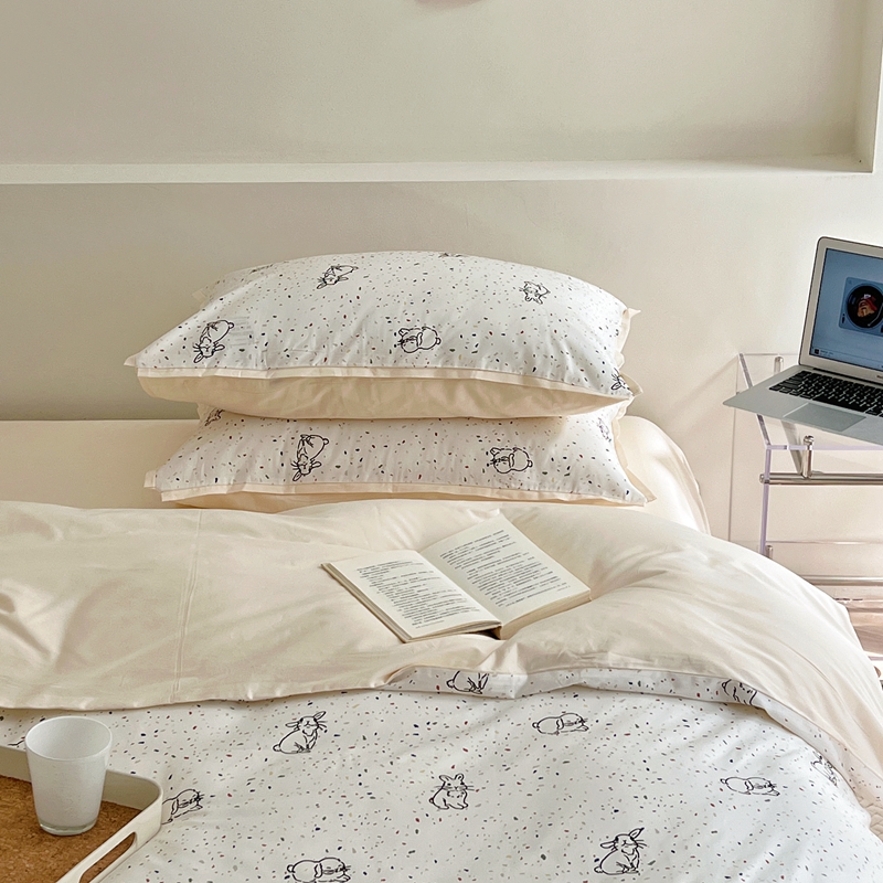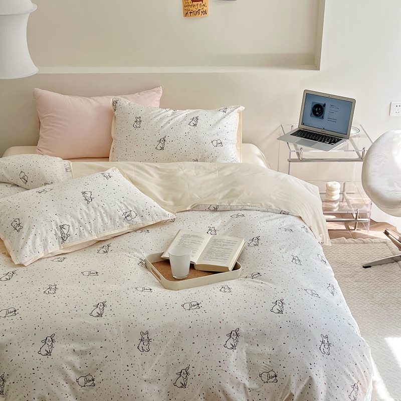 当前位置: 91家纺网 > 商品网购 > 床品套件 > 四件套 > 全棉普通四件套 > 蕊姿 50sA类数码印花四件套 彩点小兔 米色