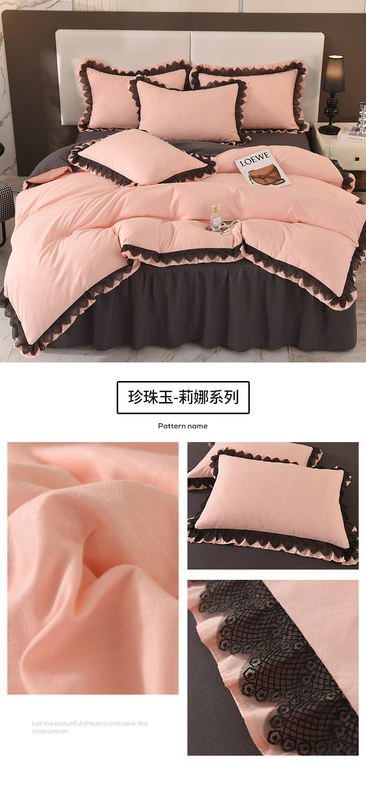 芭比蔓 2024新款法式蕾丝电脑边四件套-莉娜系列 珍珠玉