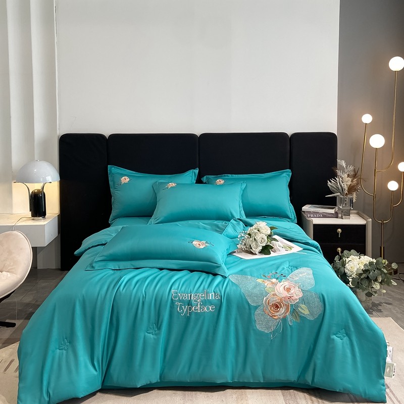 商品名称:伊人居 2024新款轻奢系列刺绣水洗真丝夏被四件套 蝶恋花-高级兰