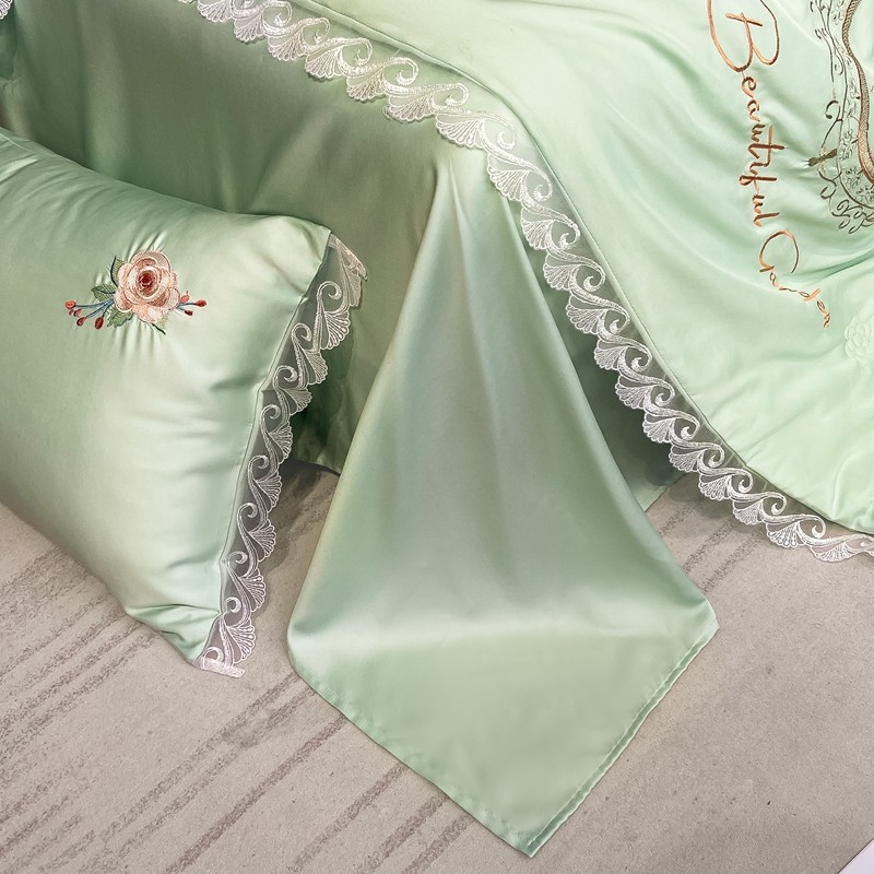 (总)伊人居 2024新款蕾丝款夏被四件套-梦娜系列,梦娜-抹茶金,梦娜-湖水兰,梦娜-珍珠粉,梦娜-薄荷绿,梦娜-香玉紫