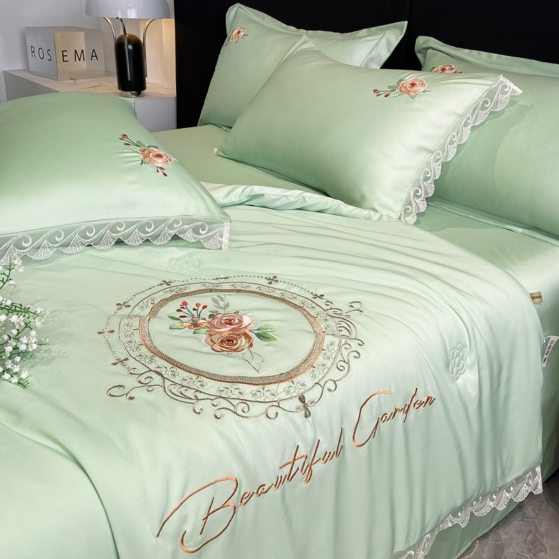 商品名称:新款欧式风情系列刺绣水洗真丝夏被四件套 欧式风情-清爽绿