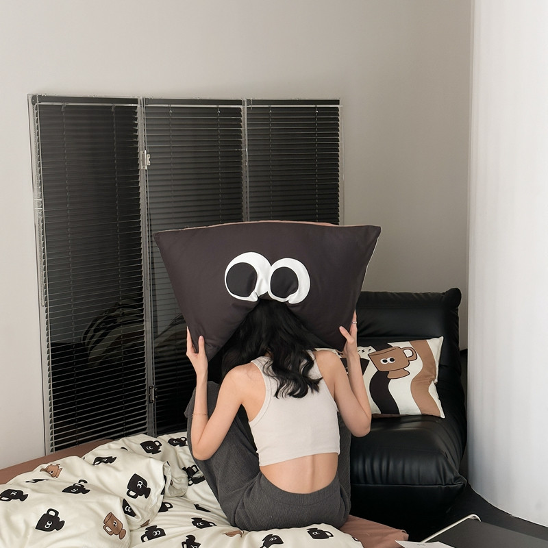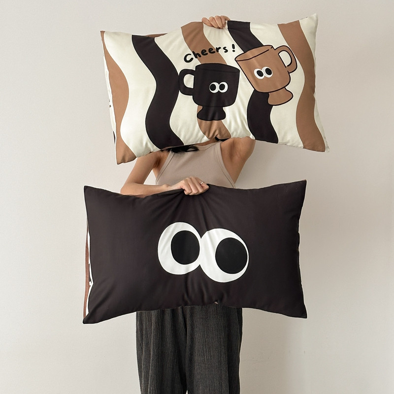 桃喜2024新款甜辣潮酷数码印花大版全棉枕套 大版-黑眼豆豆咖