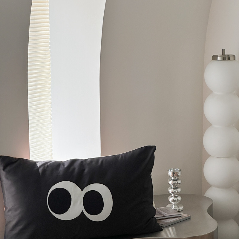 商品名称:桃喜2024新款甜辣潮酷数码印花大版全棉枕套 大版-黑眼豆豆咖