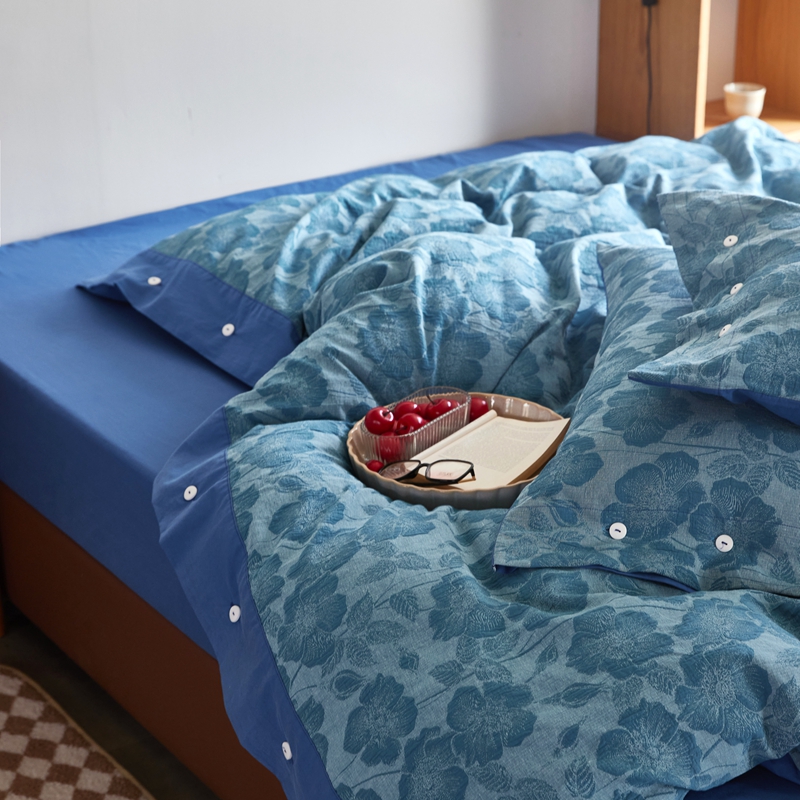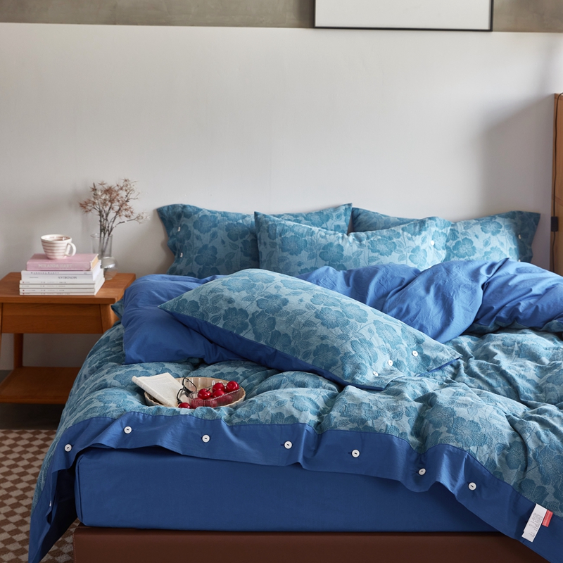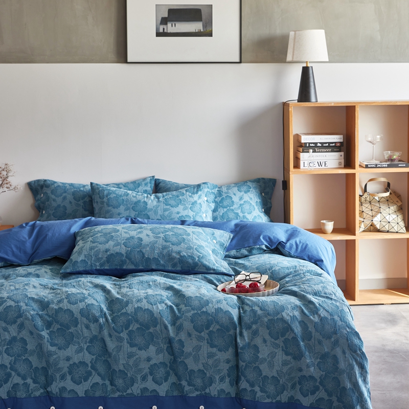 安莱生活 2023新款双层纱大提花高奢工艺款四件套-虞美人 虞美人--克莱因蓝