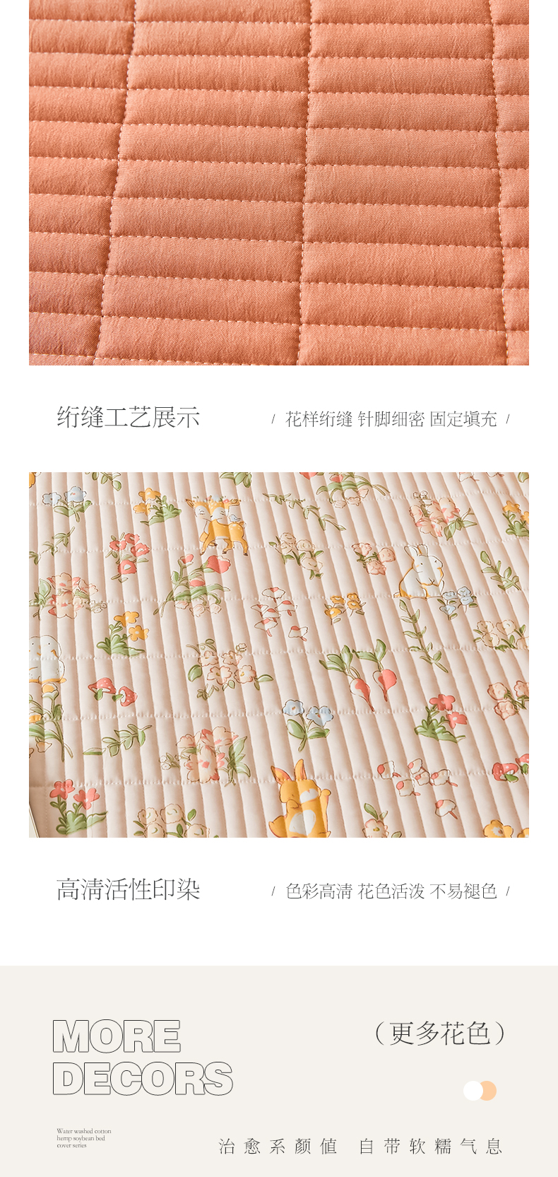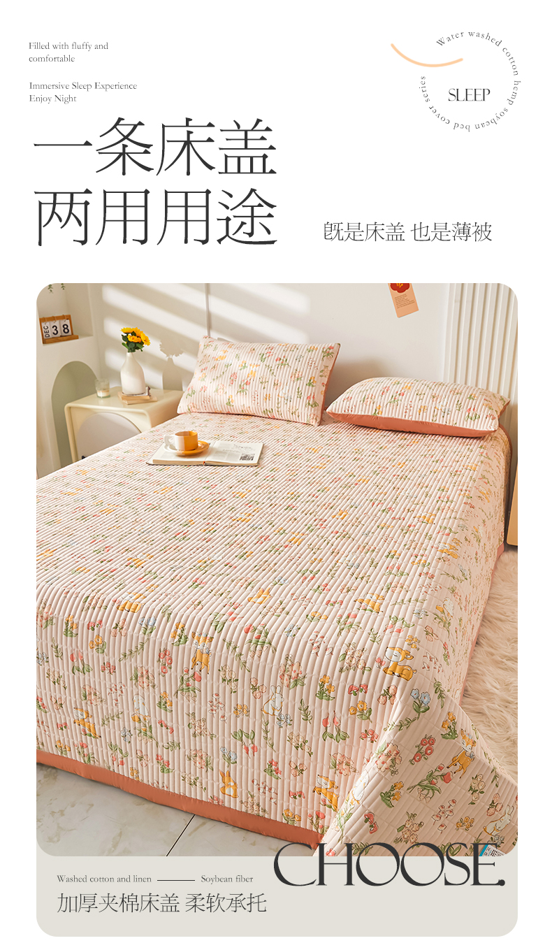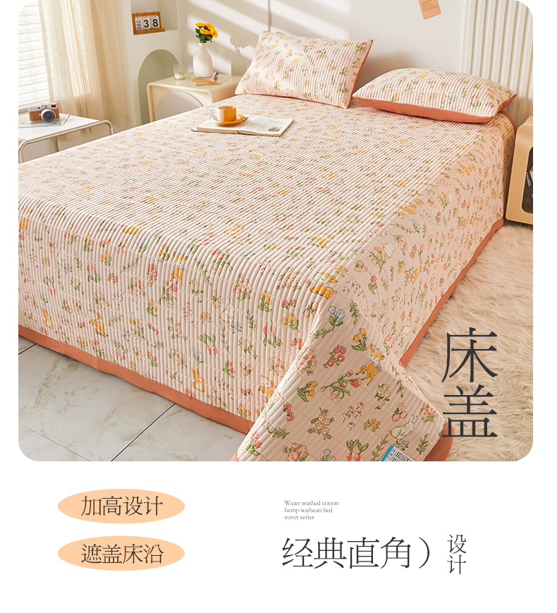圣比熊水洗棉麻床盖大豆纤维夹棉加厚宿舍铺盖两用床单床裙保护垫 花中鹿