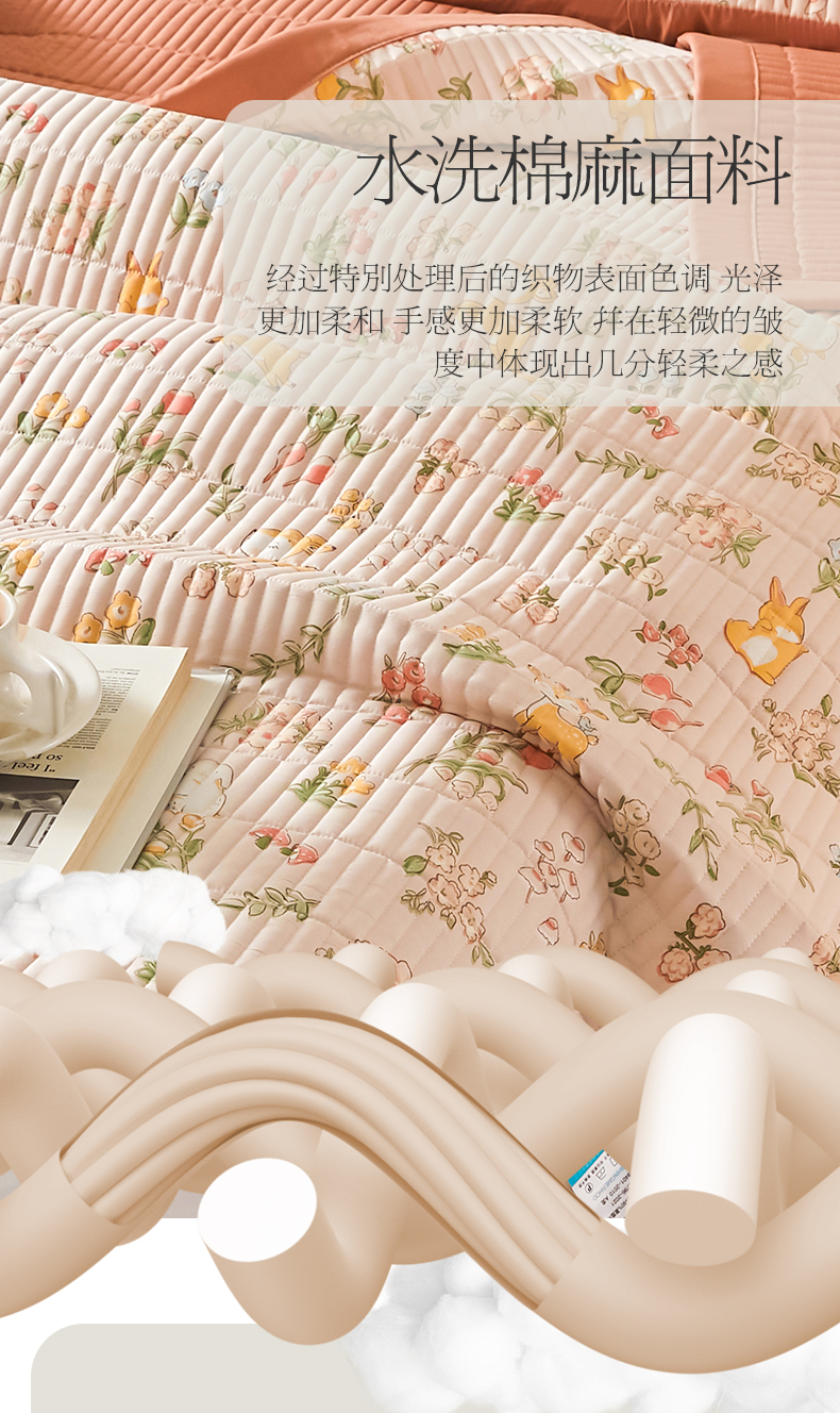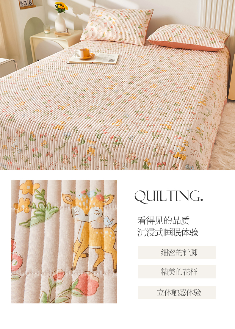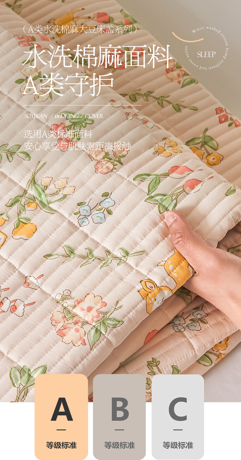 商品名称:圣比熊水洗棉麻床盖大豆纤维夹棉加厚宿舍铺盖两用床单床裙保护垫 花中鹿