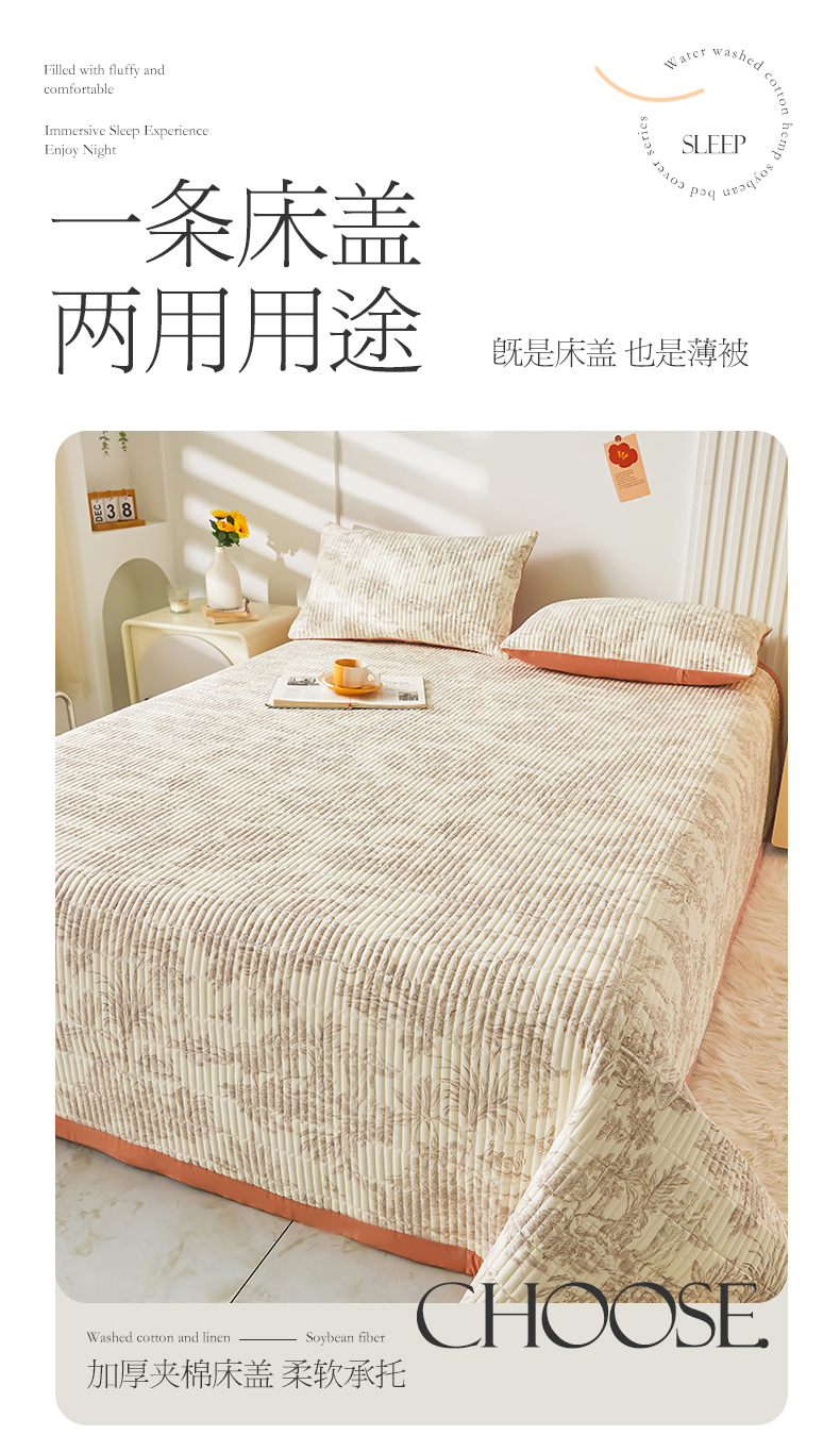 圣比熊水洗棉麻床盖大豆纤维夹棉加厚宿舍铺盖两用床单床裙保护垫 逐风