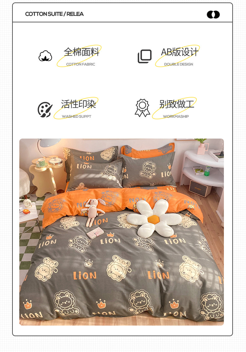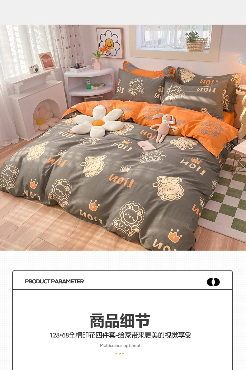 当前位置: 91家纺网 > 商品网购 > 床品套件 > 四件套 > 全棉普通四件套 > 多品家纺 2023新款12868全棉印花四件套系列第二批 狮子王—咖