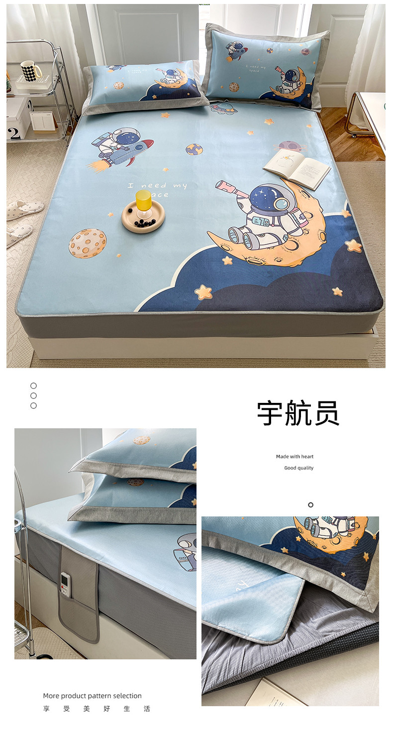 商品名称:三味舒屋 2023新款凉感抗菌防螨卡通印花冰丝养生席-床笠款 宇航员床笠