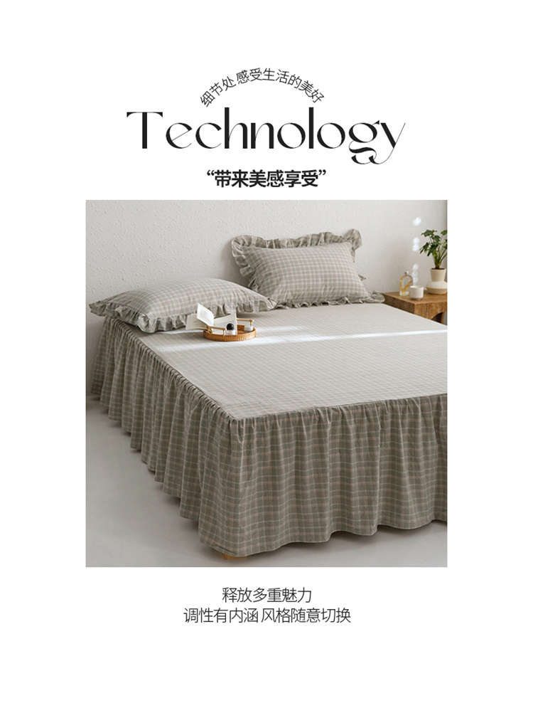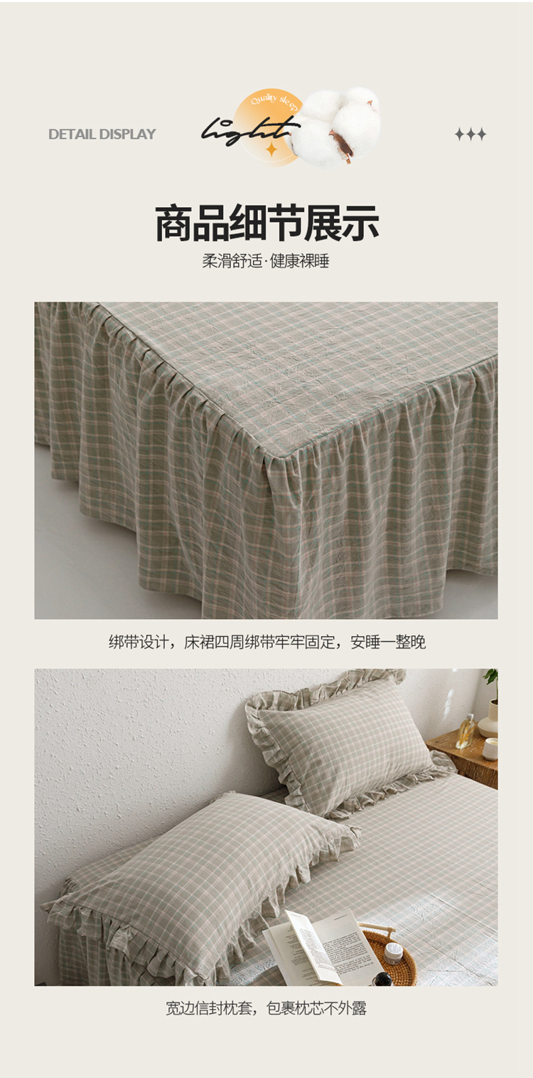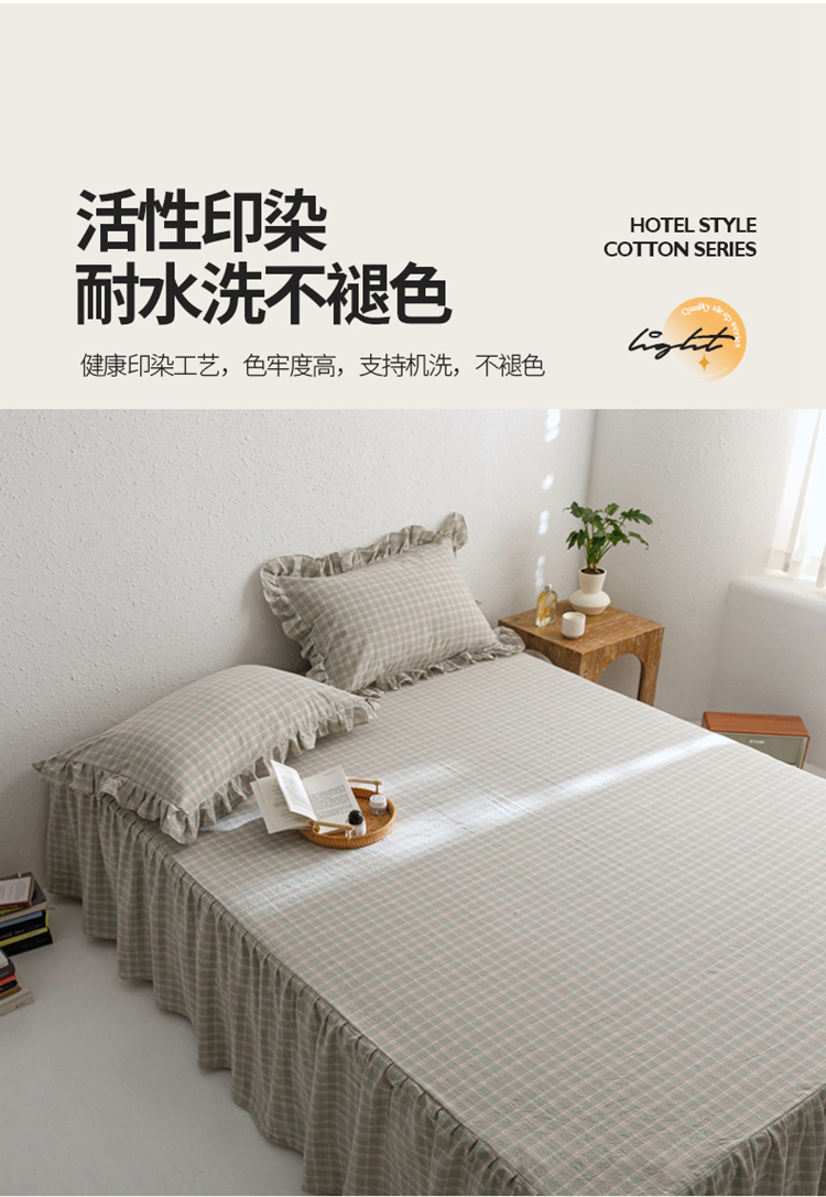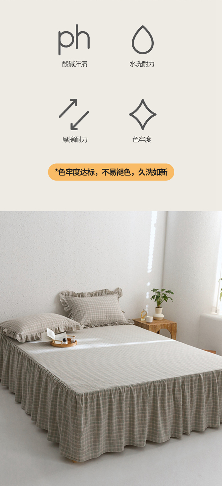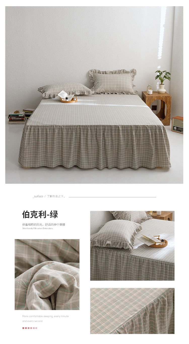 商品名称:忘忧草 2023新款全棉色织水洗棉床裙纯棉格子 伯克利-绿