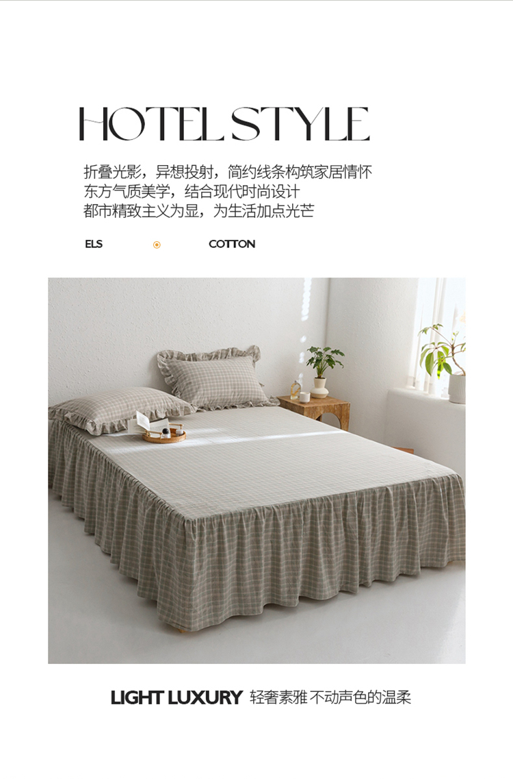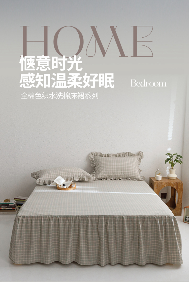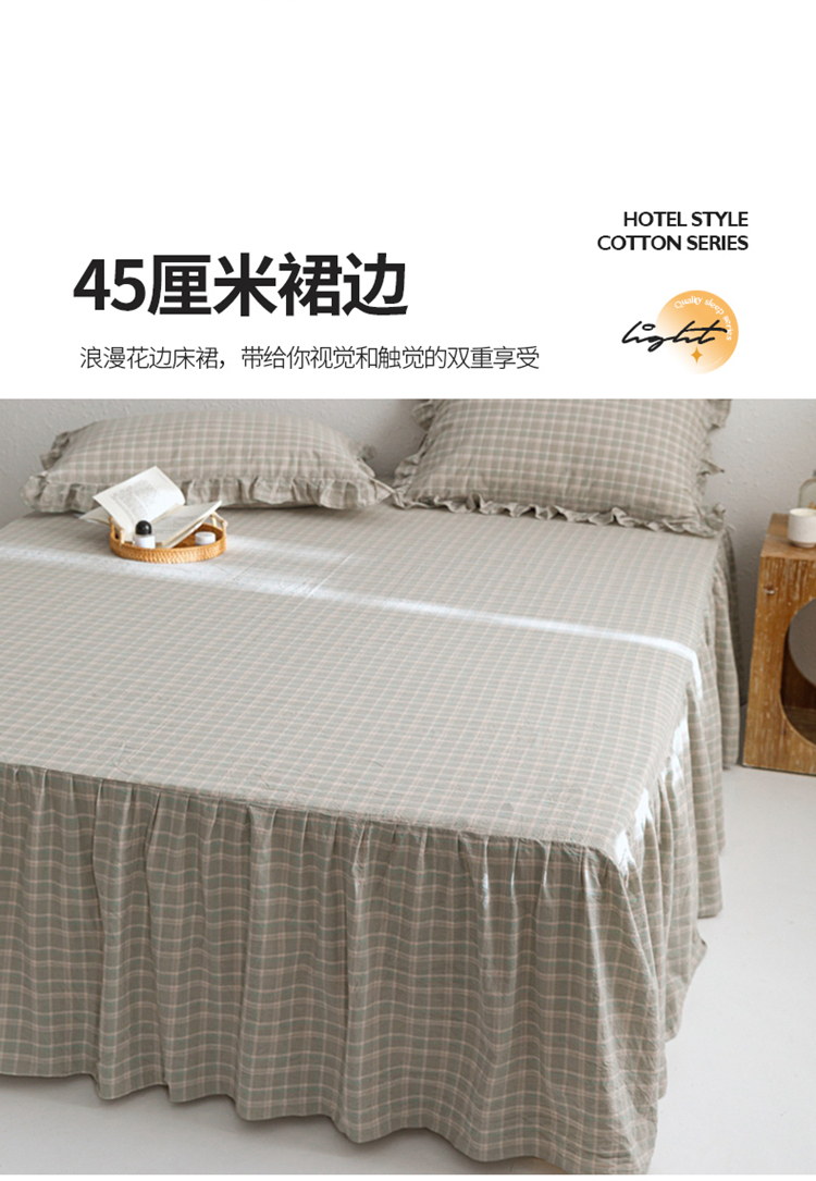(总)忘忧草 2025新款全棉色织水洗棉床裙纯棉夹棉加厚纯色无印风,格韵-白色,格韵-豆绿,格韵-粉玉,格韵-灰色,格韵-卡其,格韵-浅蓝