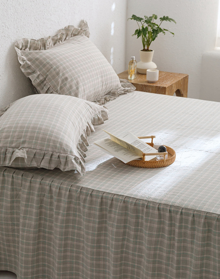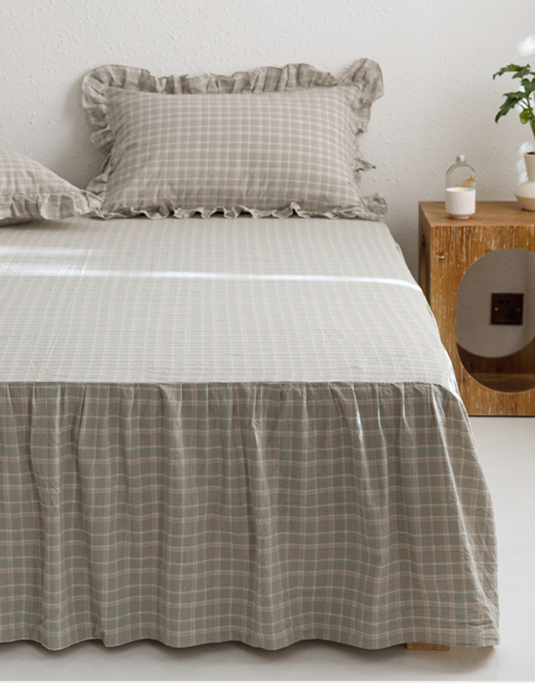 忘忧草 2023新款全棉色织水洗棉床裙纯棉格子 伯克利-绿