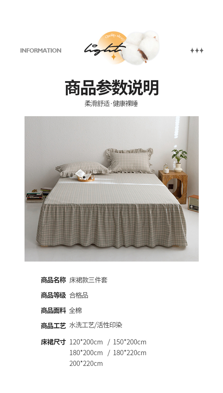 (总)忘忧草 2025新款全棉色织水洗棉床裙纯棉格子床罩,伯克利-绿,春风曲-粉,格物-白,格物-豆沙,简爱-粉,里昂-灰,雅尚--黑小格,雅尚-玉小格,雅尚-绿小格,雅尚-蓝小格