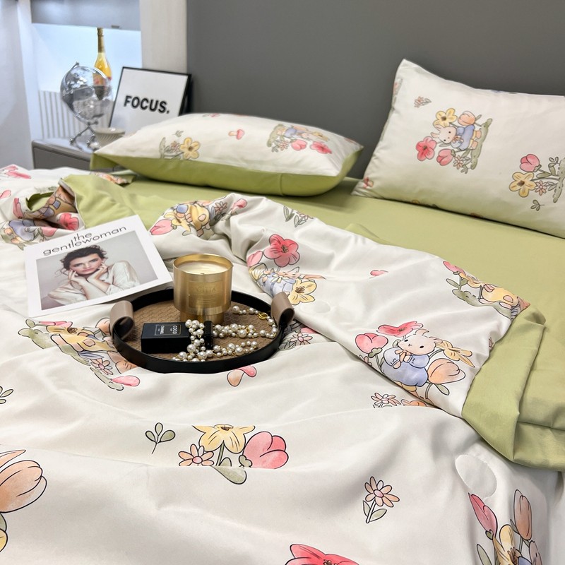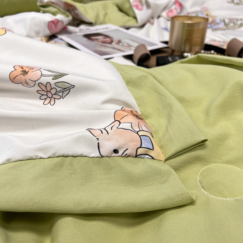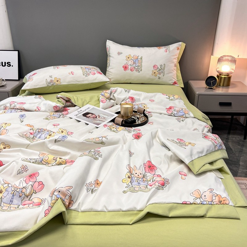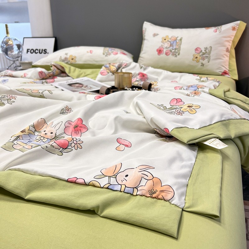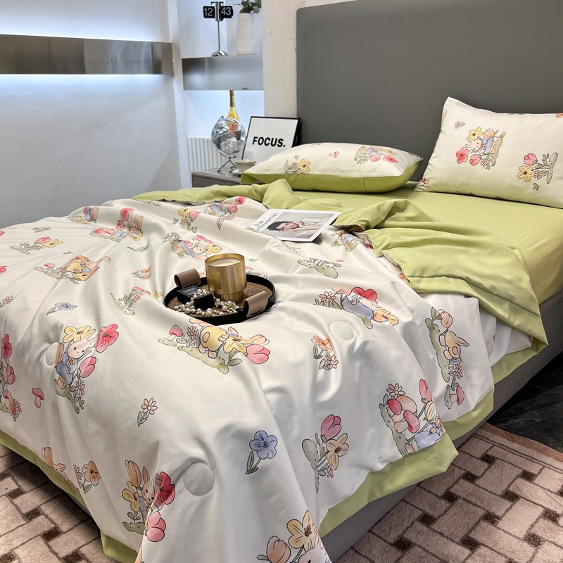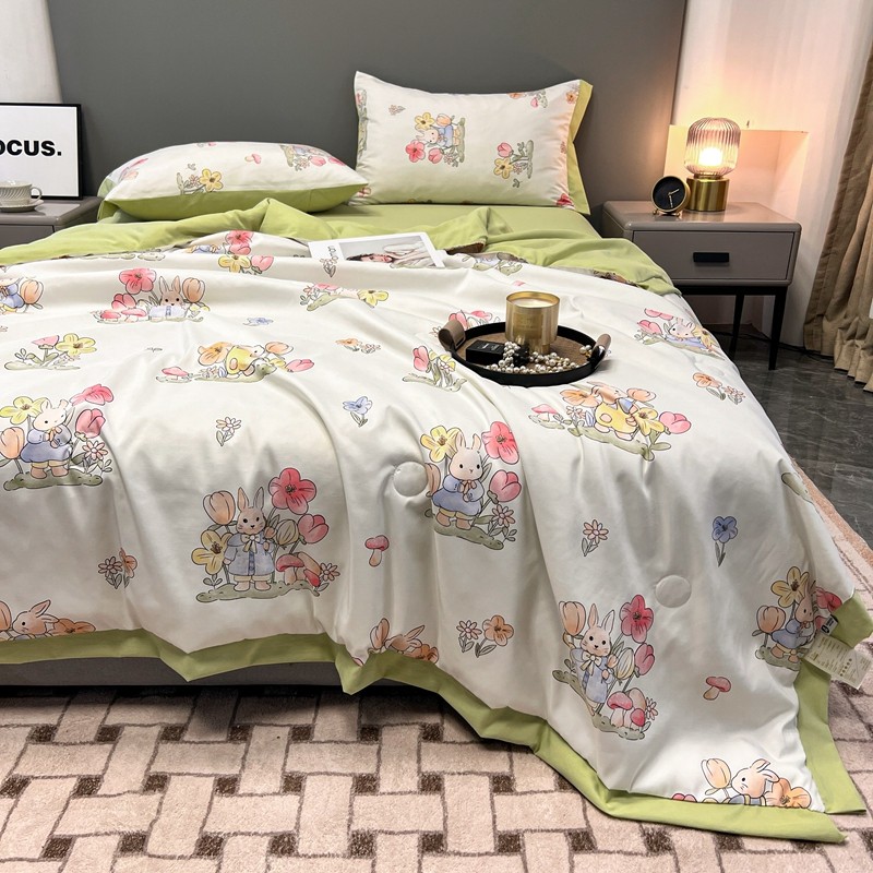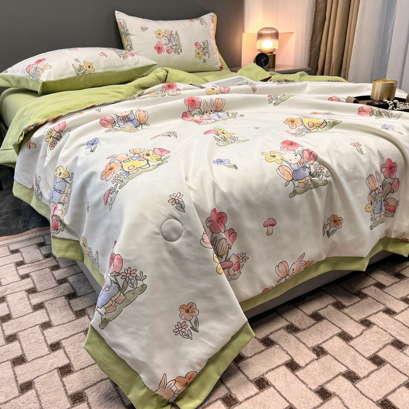 慕尚 2025新款水洗棉麻夏被四件套 发财兔