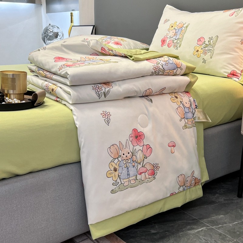 商品名称:慕尚 2025新款水洗棉麻夏被四件套 发财兔