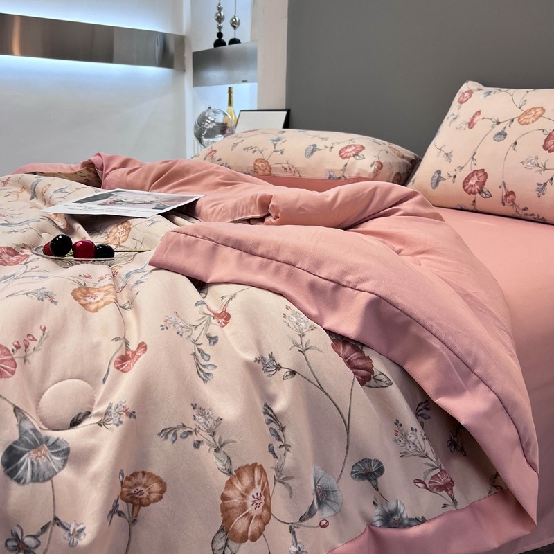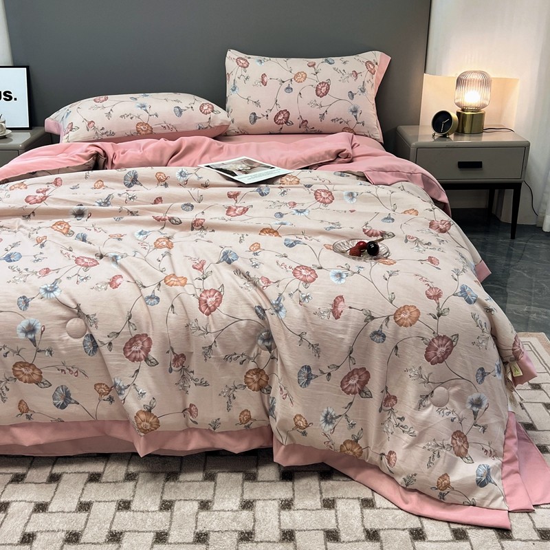 商品名称:慕尚 2025新款水洗棉麻夏被四件套 幸运花开