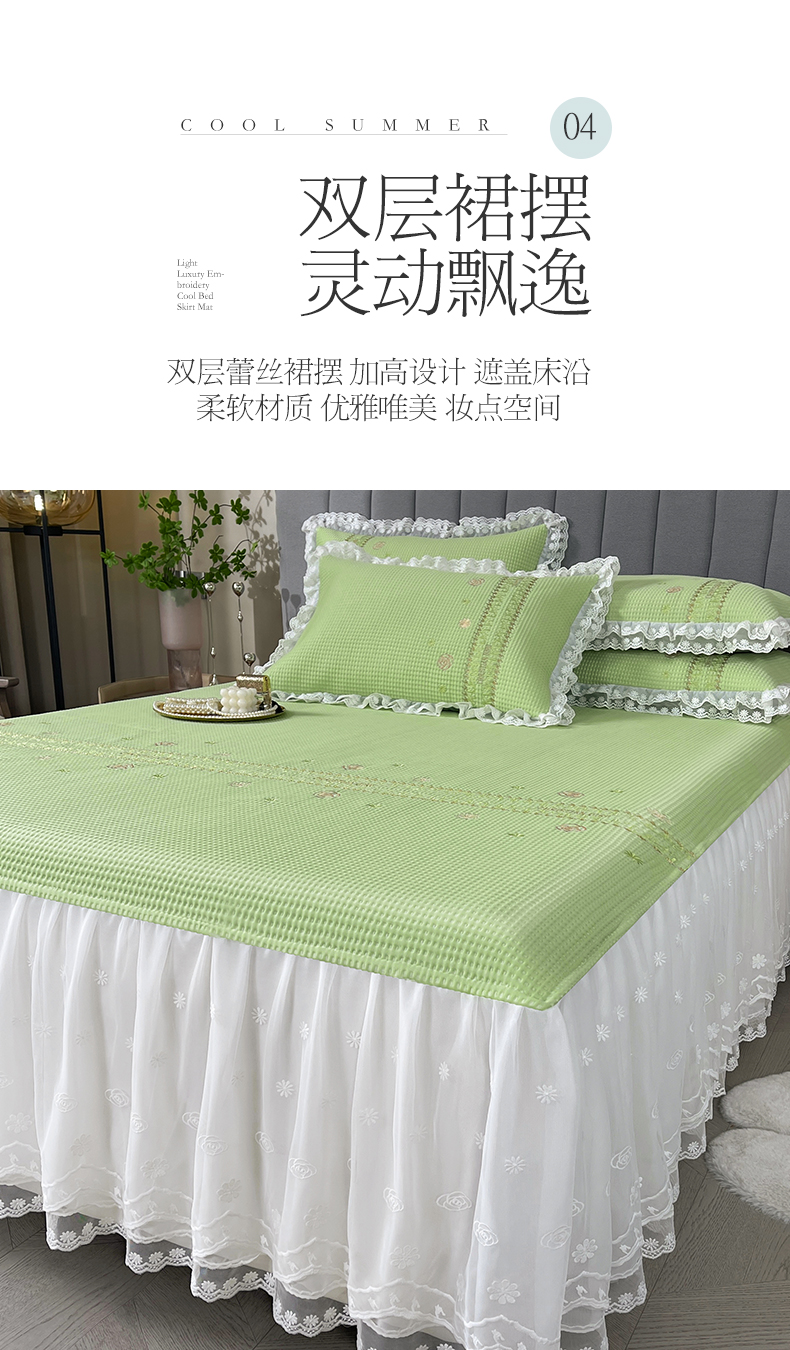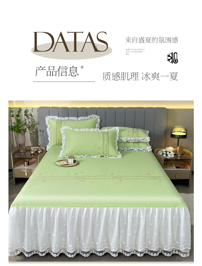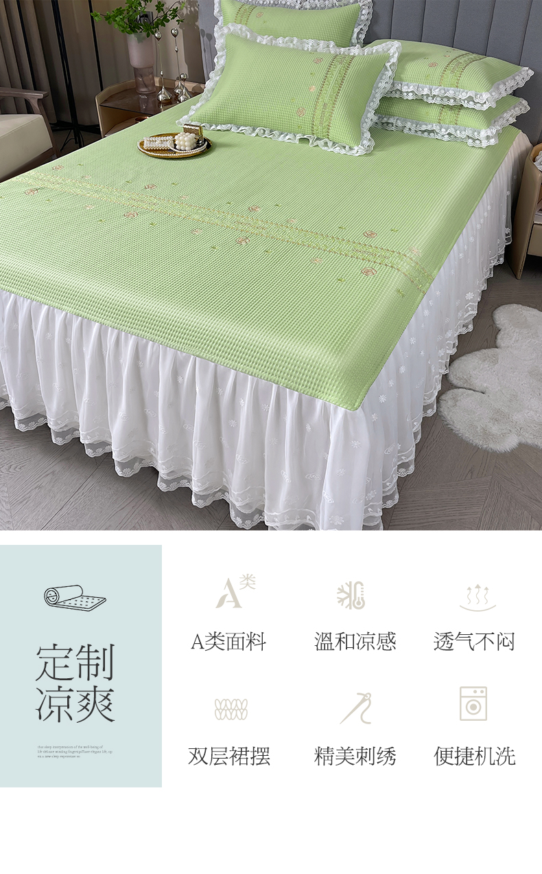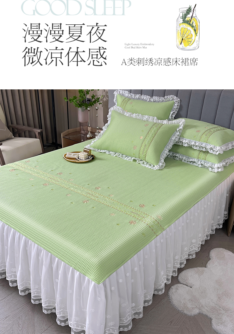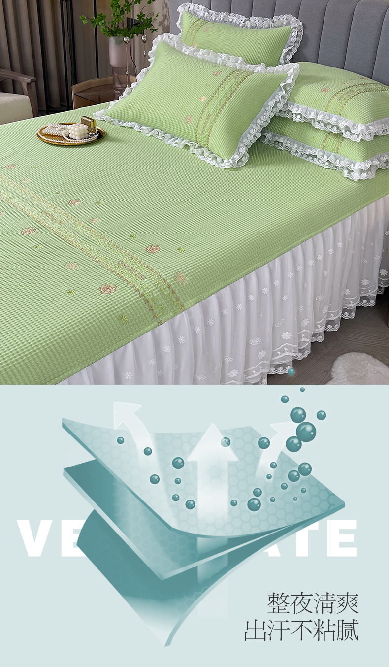 宜凡家纺2024新款A类蜂巢冰柠凉席床裙款三件套 简爱 抹茶