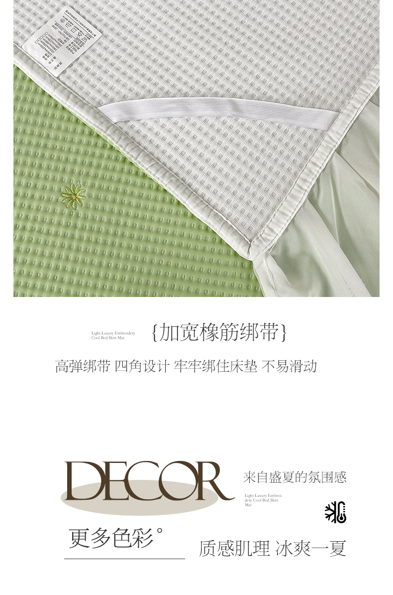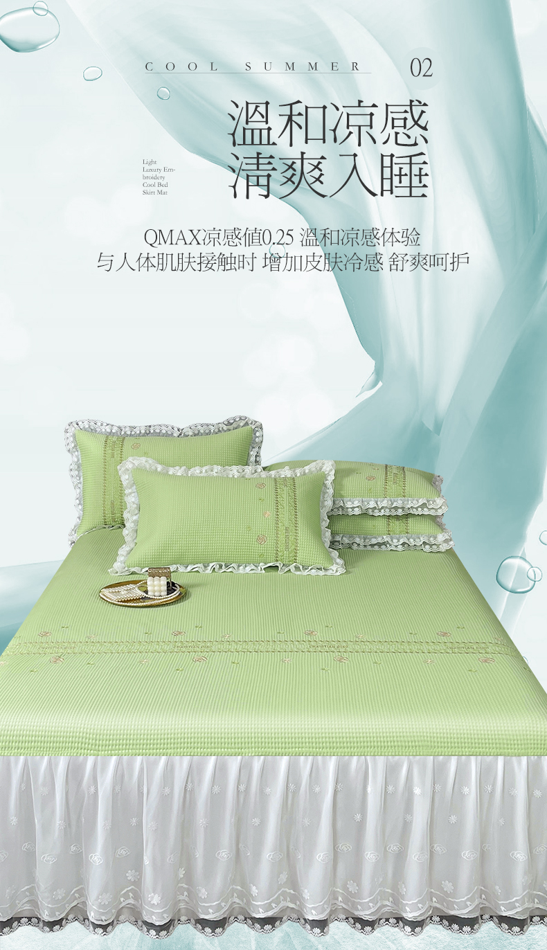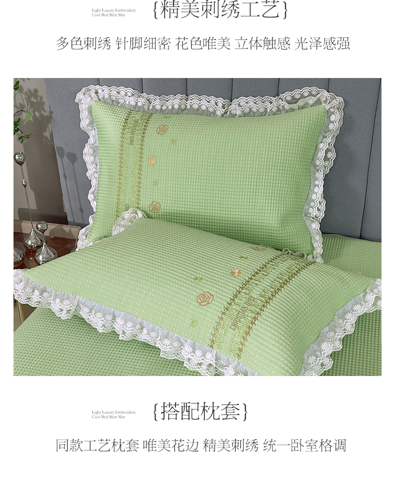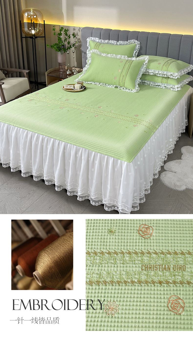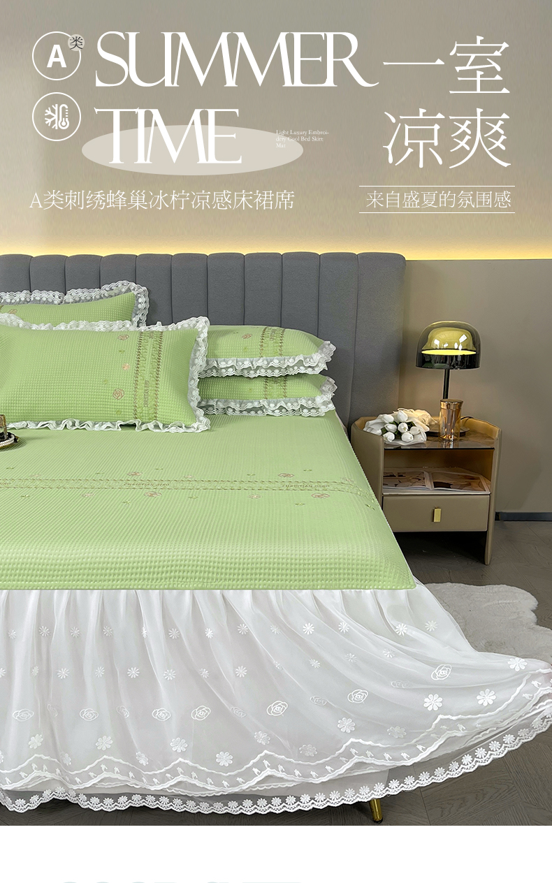 宜凡家纺2024新款A类蜂巢冰柠凉席床裙款三件套 简爱 抹茶