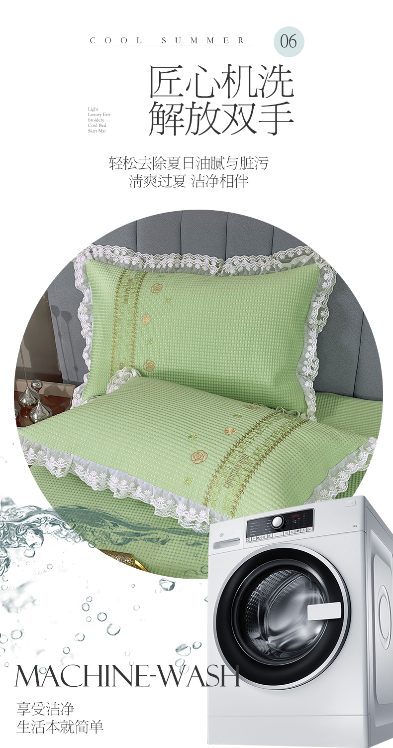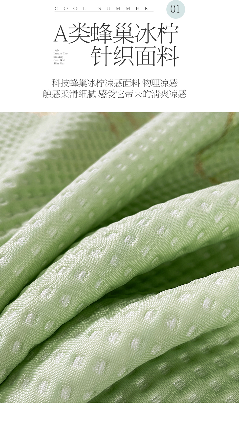商品名称:宜凡家纺2024新款A类蜂巢冰柠凉席床裙款三件套 简爱 抹茶