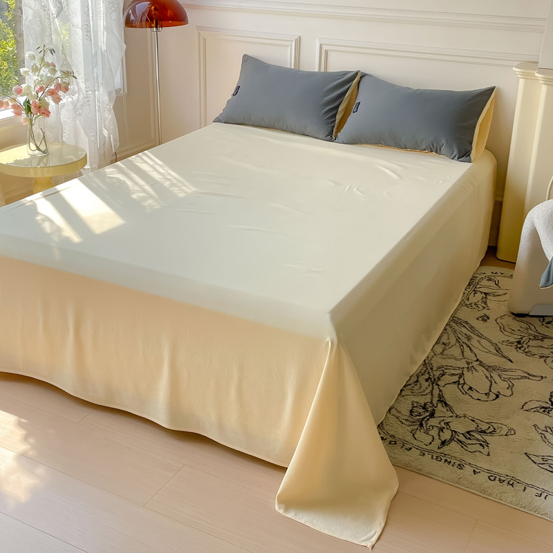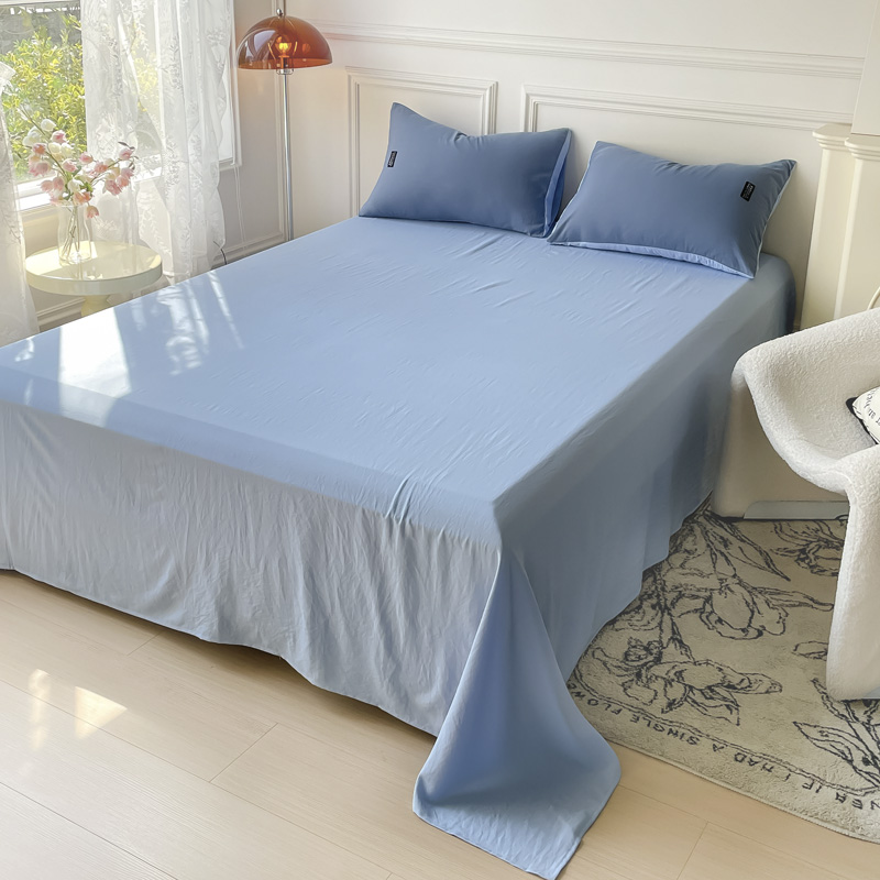 米瑞娜2024新款水洗棉麻双拼纯色床单 雾蓝+淡蓝床单
