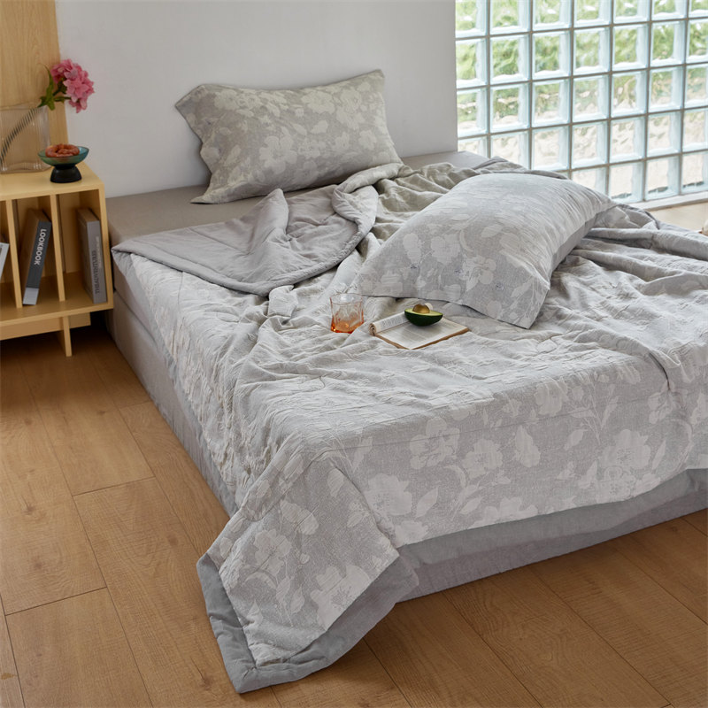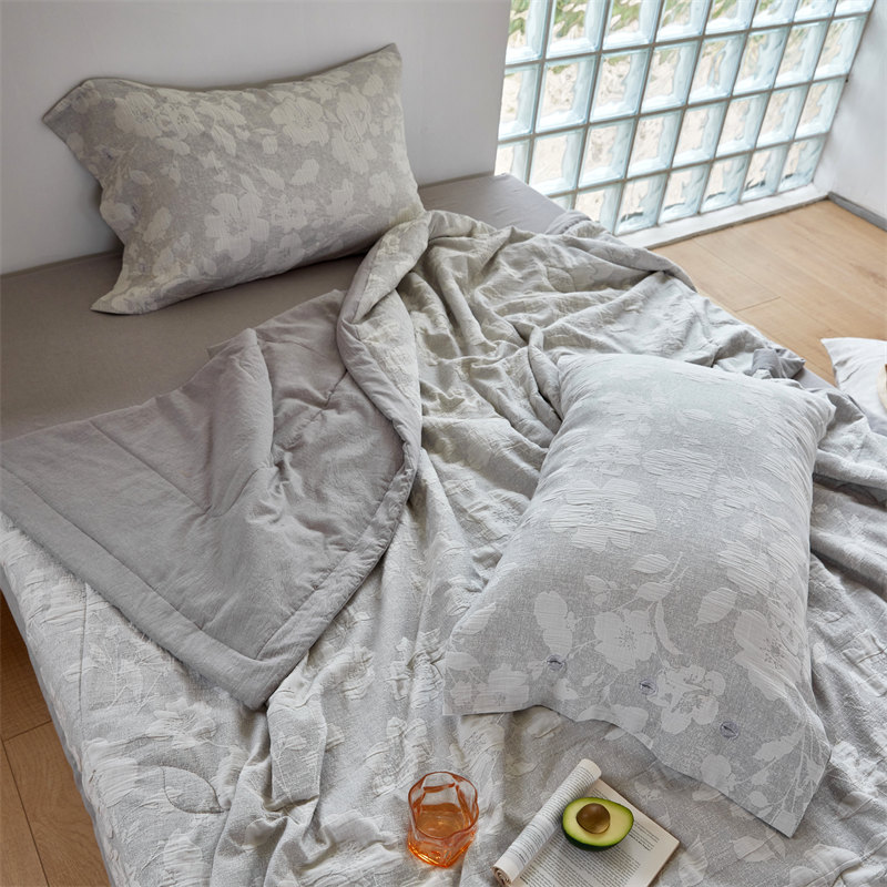 当前位置: 91家纺网 > 商品网购 > 床品套件 > 四件套 > 夏被四件套 > 安莱生活 2023新款双层纱大提花花都夏被及夏被四件套 花都-银灰