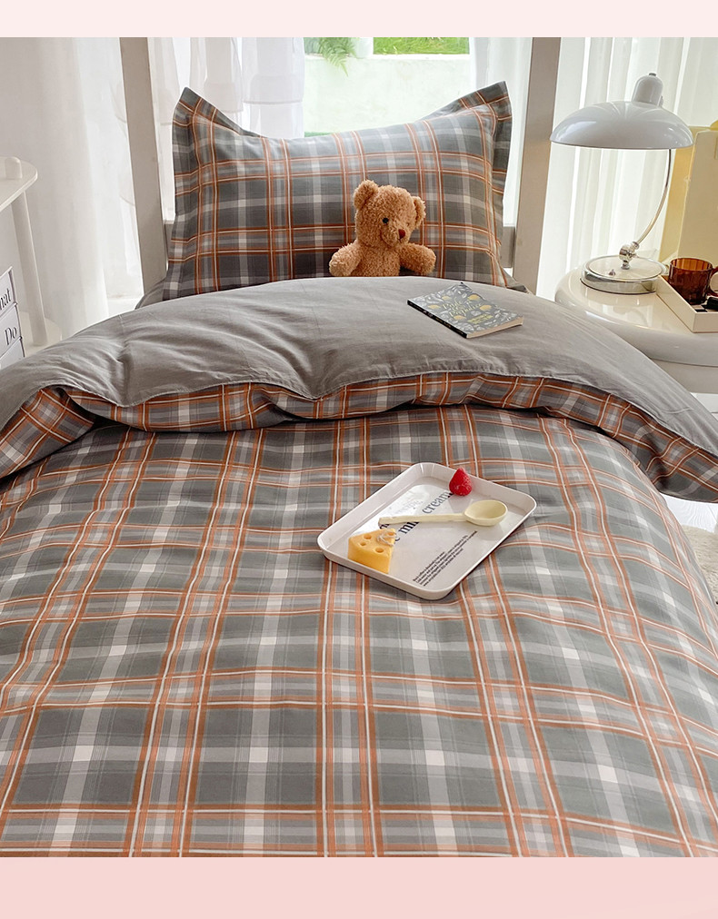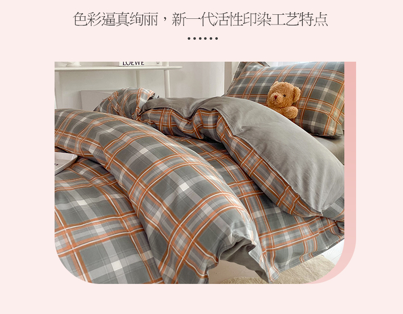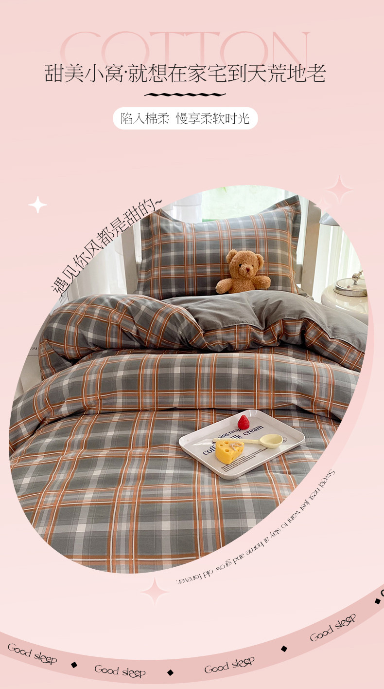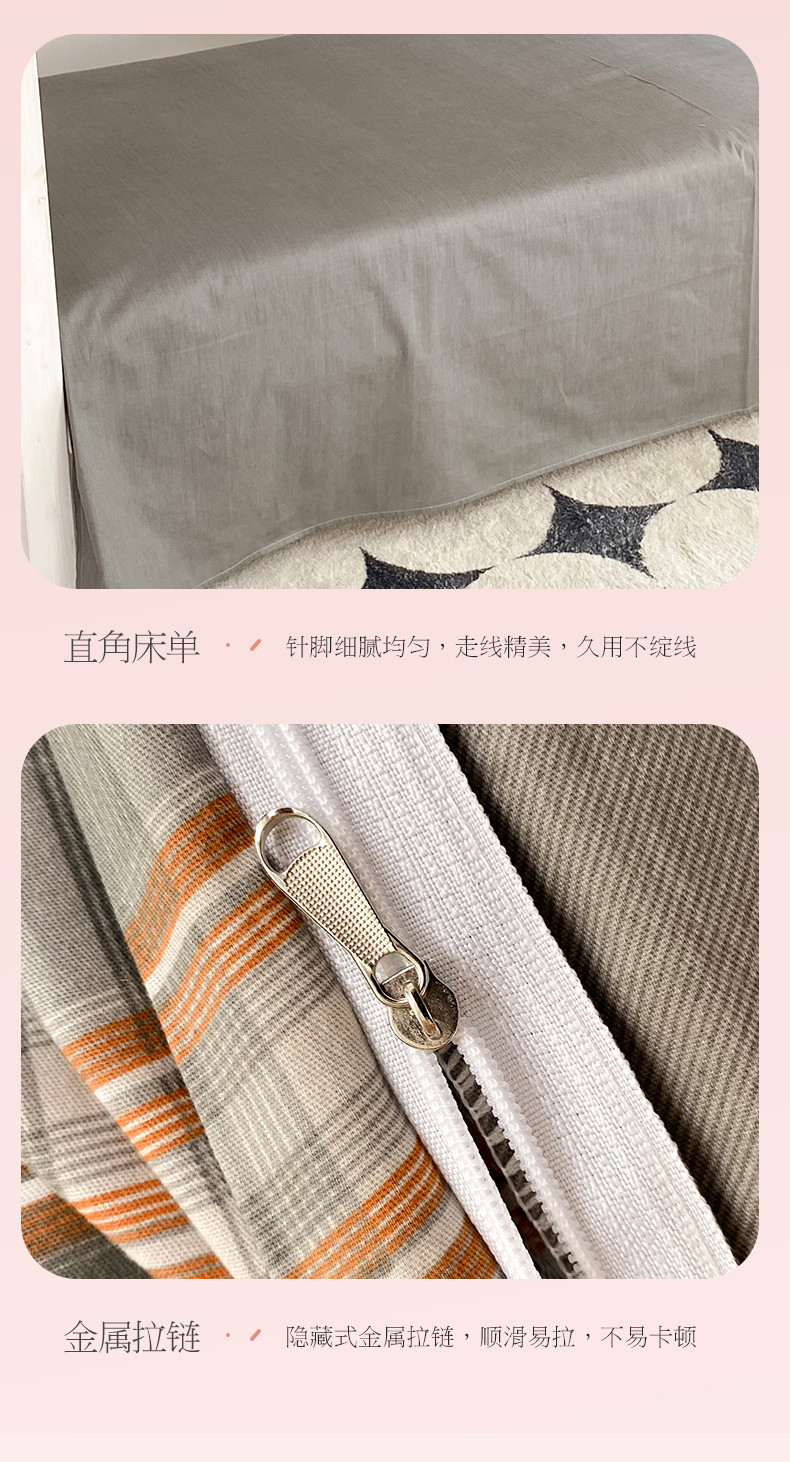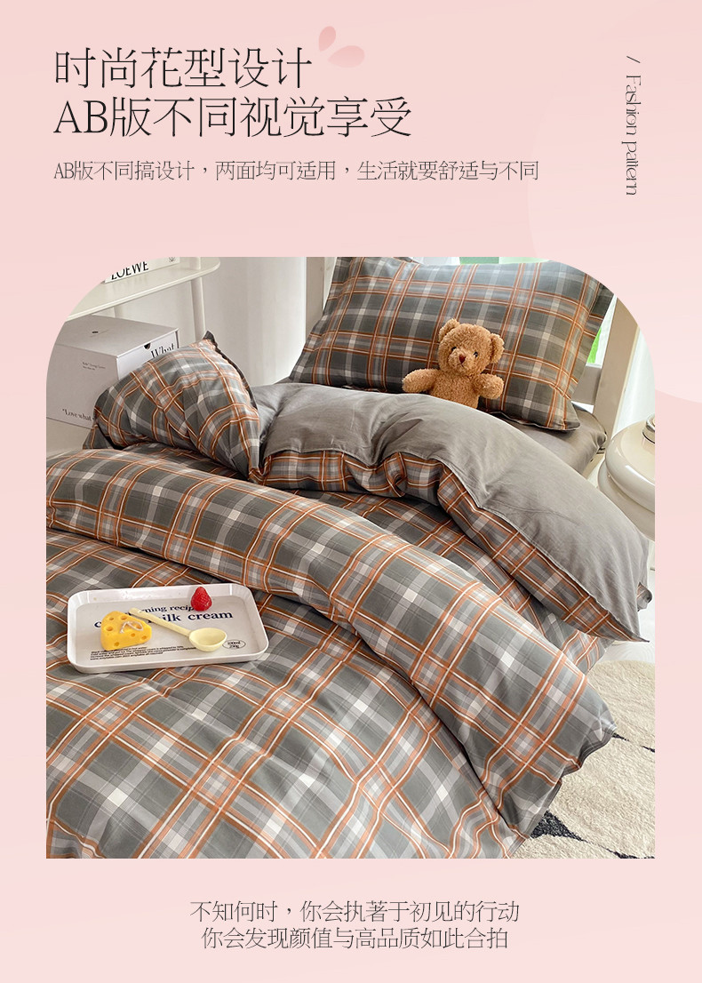 (总)多品家纺 2025新款简约复古风水洗棉格子四件套,黑小格+黑,柏林+黑,柏林+黑小格,黑小格+杏黄,时光+黑,时光+黑白格