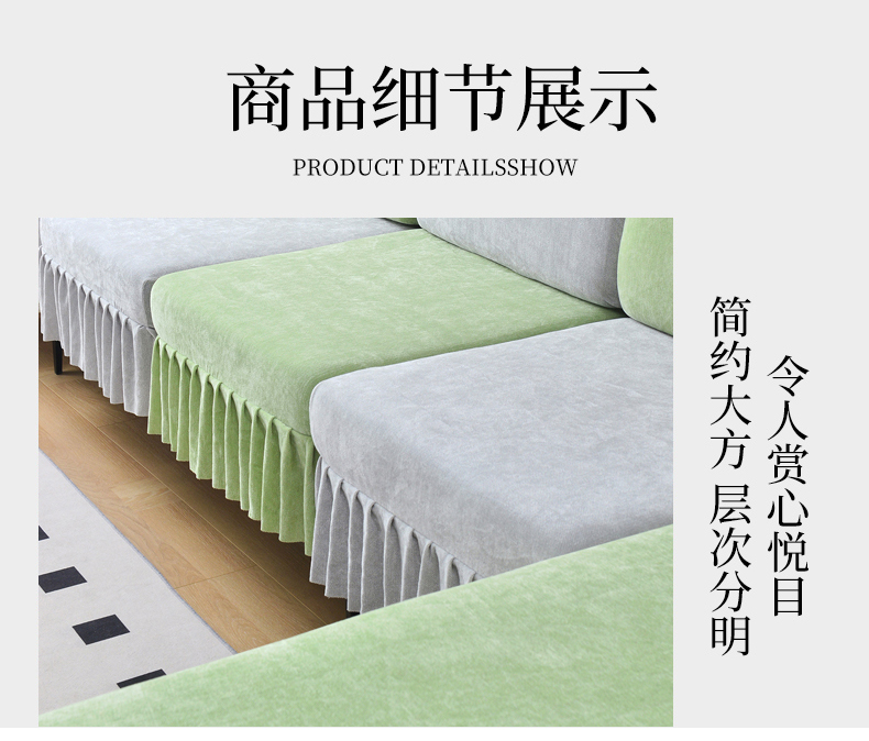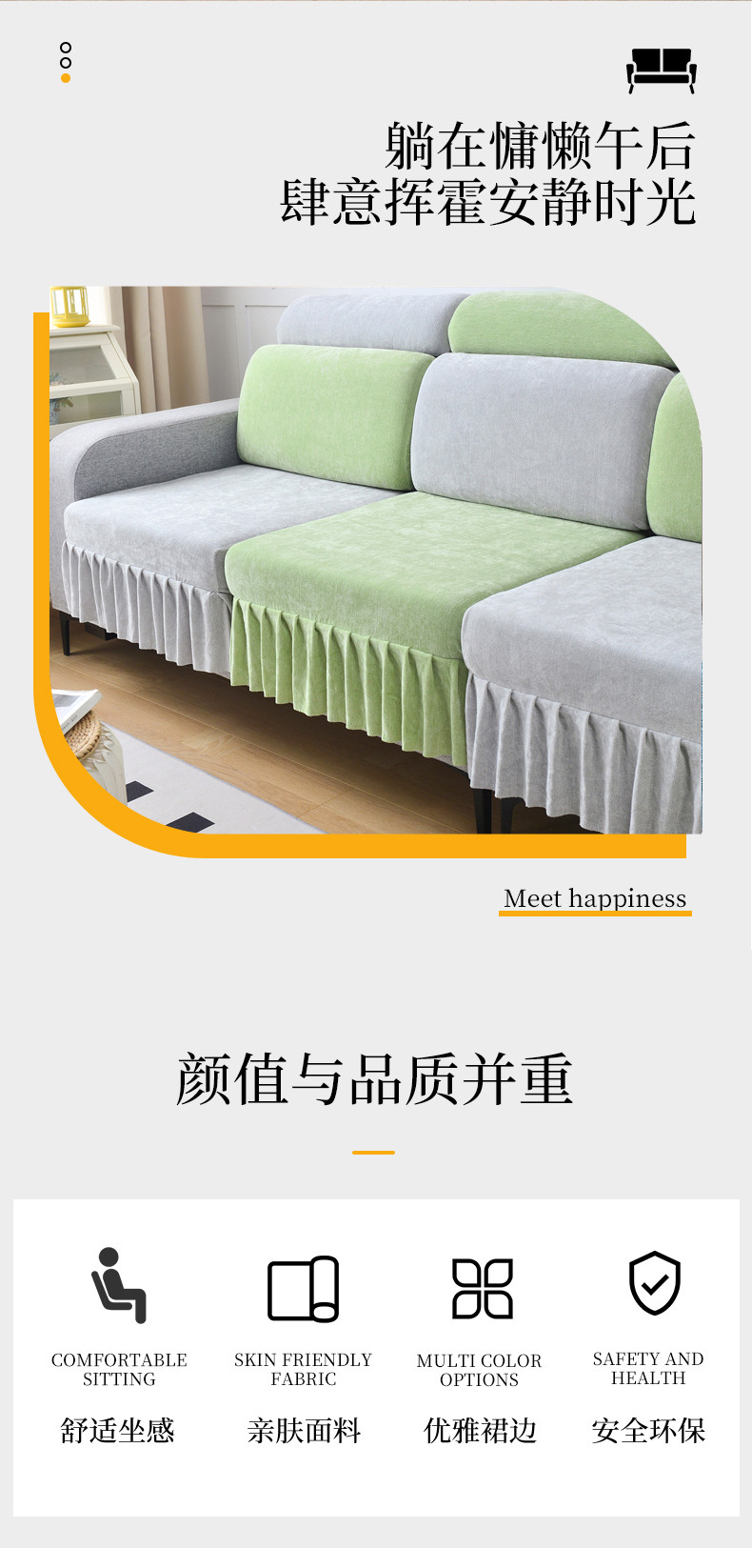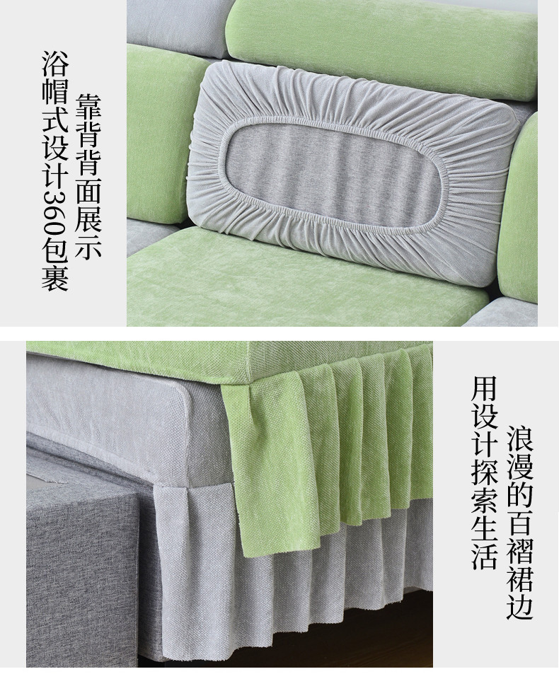 当前位置: 91家纺网 > 商品网购 > 居家布艺 > 坐垫/椅垫/沙发垫 > 沙发垫 > 千彤 2023新款裙边沙发笠沙发套雪尼尔系列 薄荷绿银灰