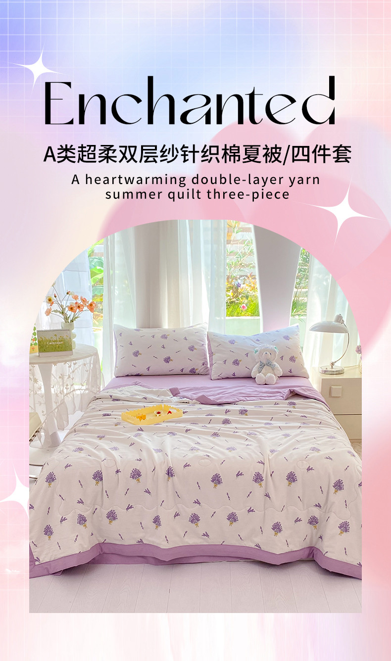 • 91家纺网 家纺一手货源 找家纺 慕尚家纺 2025新款A类超柔双层纱针织夏被四件套 及风情